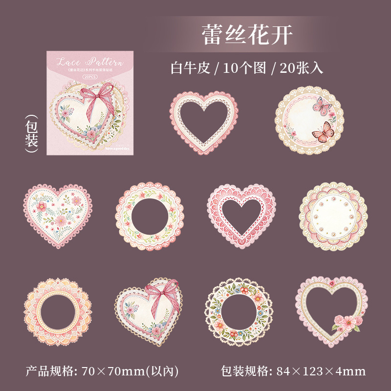 20pcs/Pack Lace Theme Kraft Paper Stickers