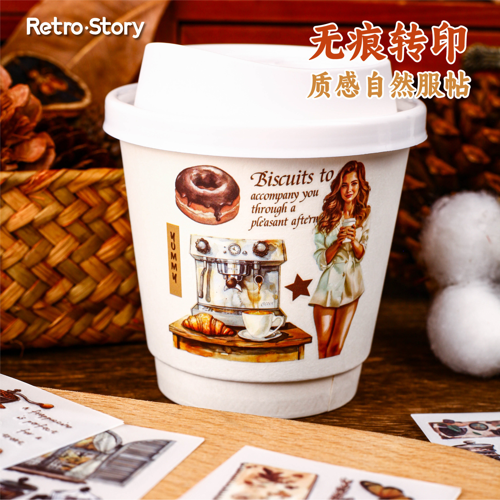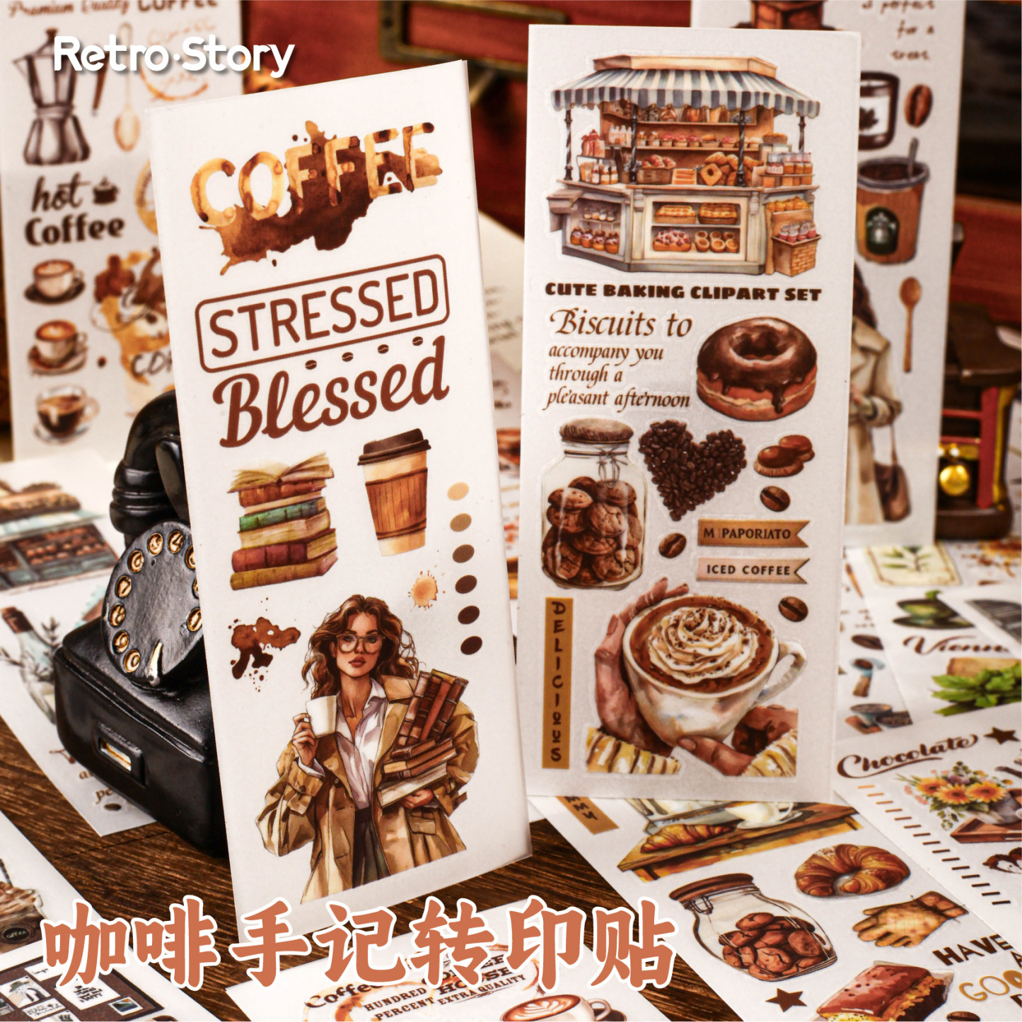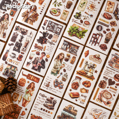 20Pcs/Pack Retro Coffee Girl PVC Transfer Sticker