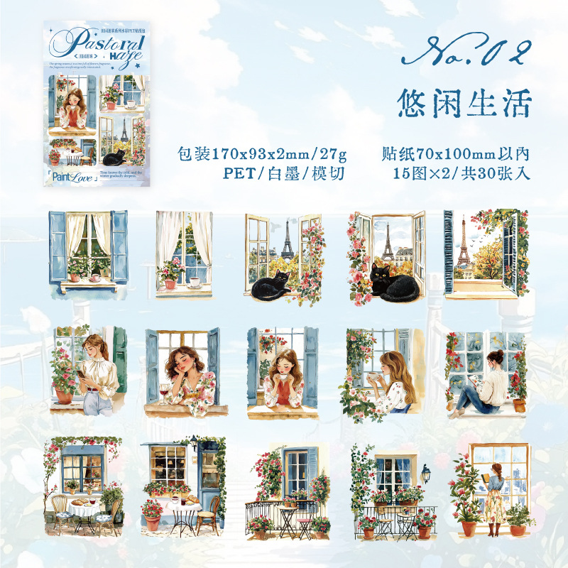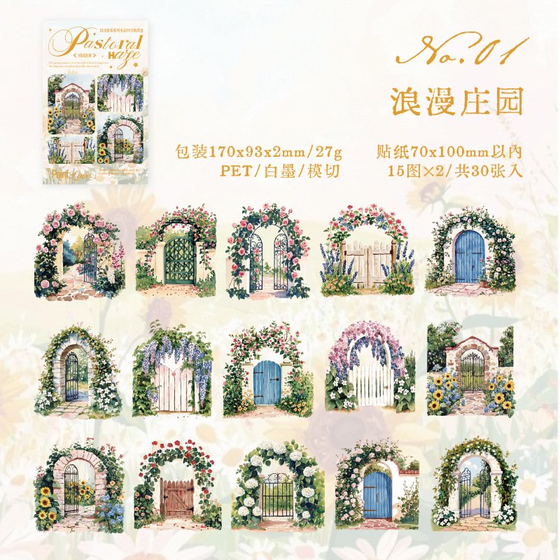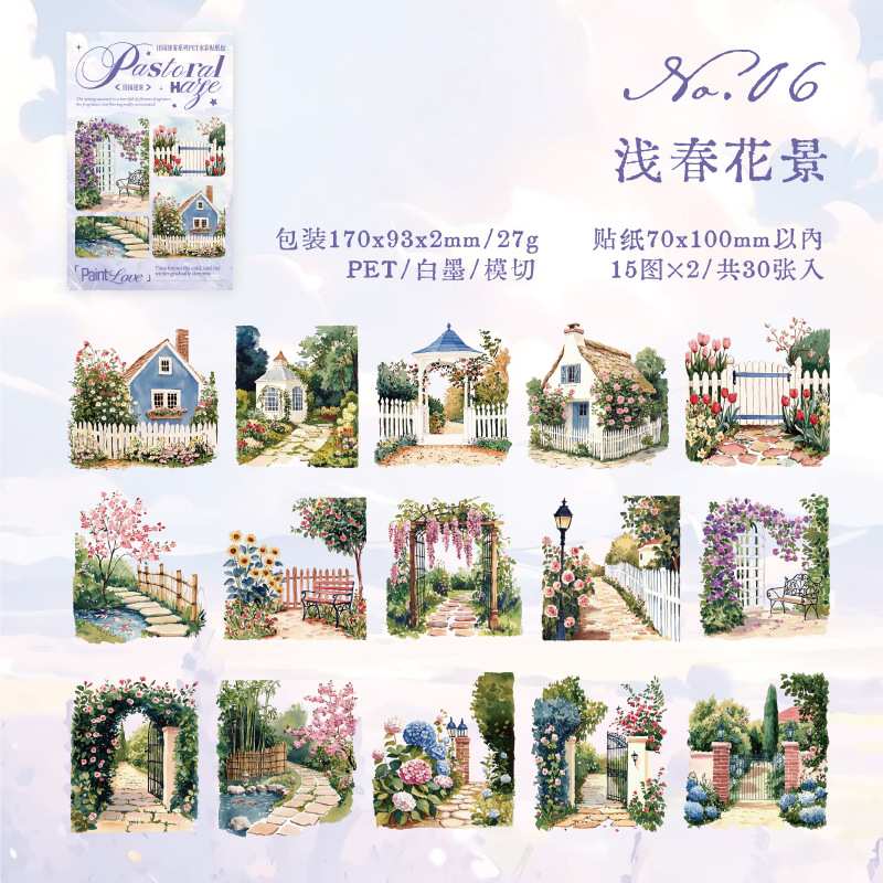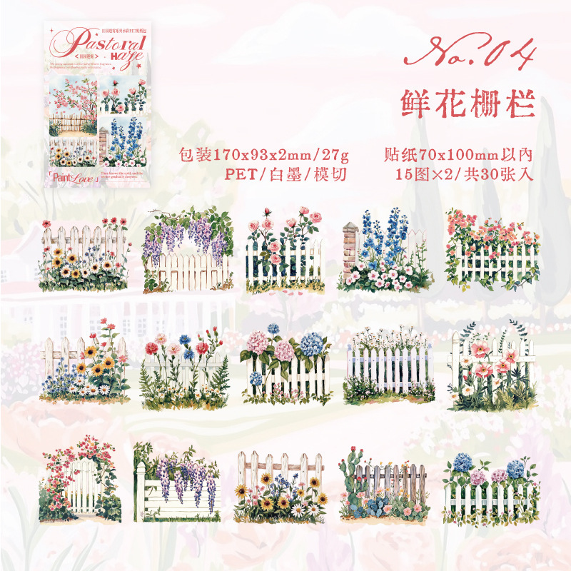 30Pcs/Pack Flower Fence Theme PET Stickers