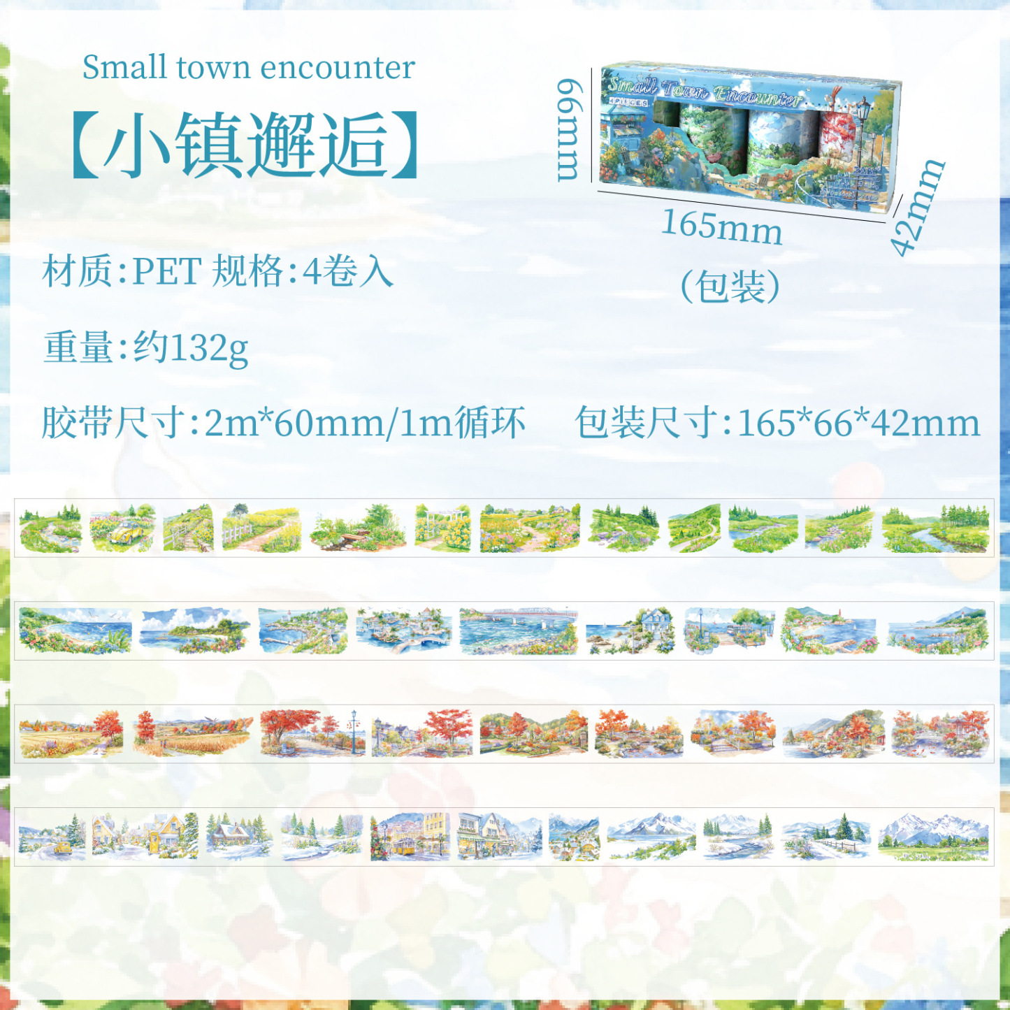 6-roll "Small Town Journey Scenery" themed PET tape set, 2.36 * 78.74 inches