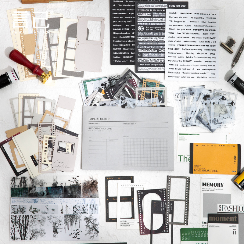 80Pcs/Pack Retro Film Text Frame Multi-material Material Pack