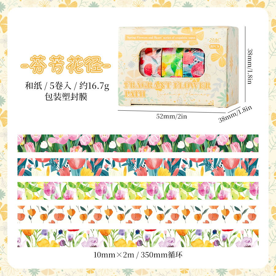 Flower Theme Washi Tape Box 0.39*78.74 inch
