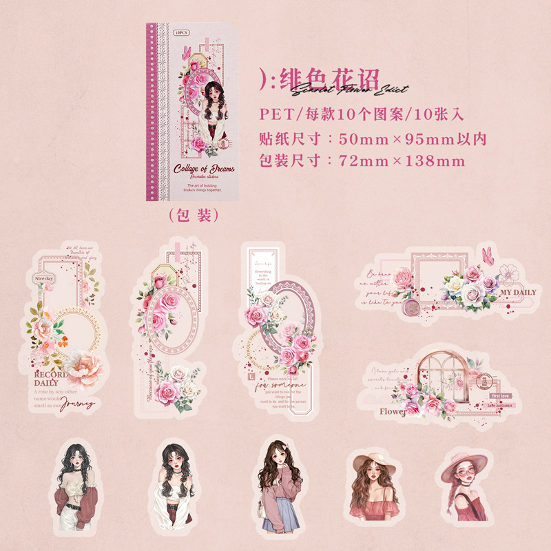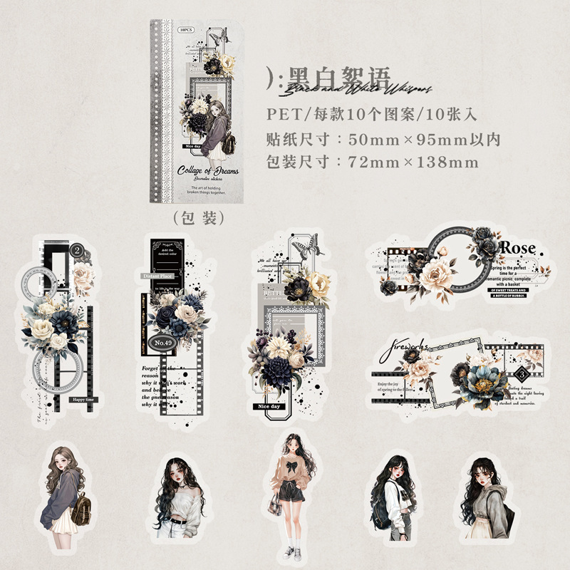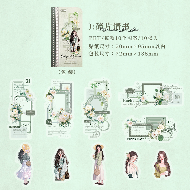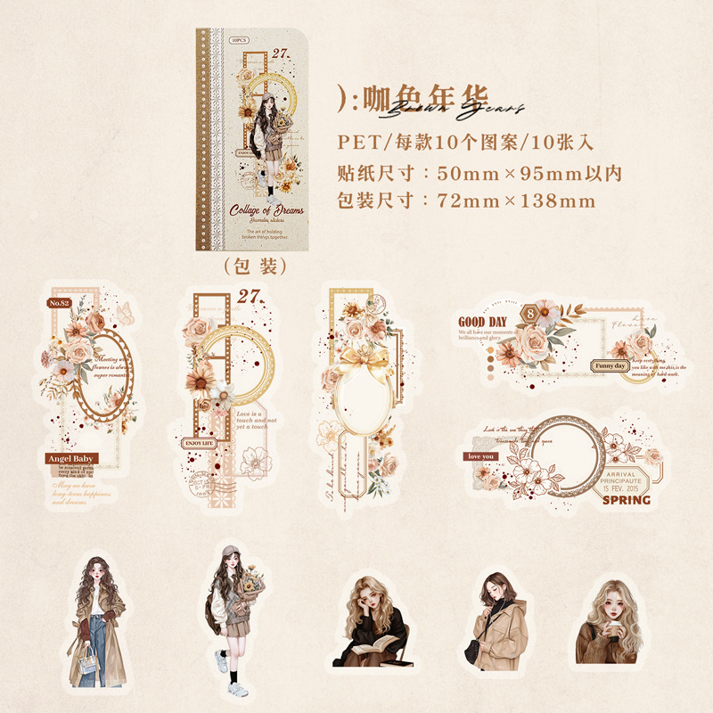 10Pcs/Pack Retro Girl Themed PET Stickers