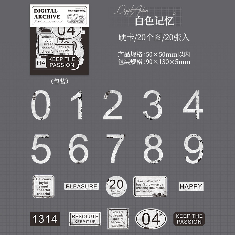 20Pcs Black & White English Phrases Theme PET Stickers