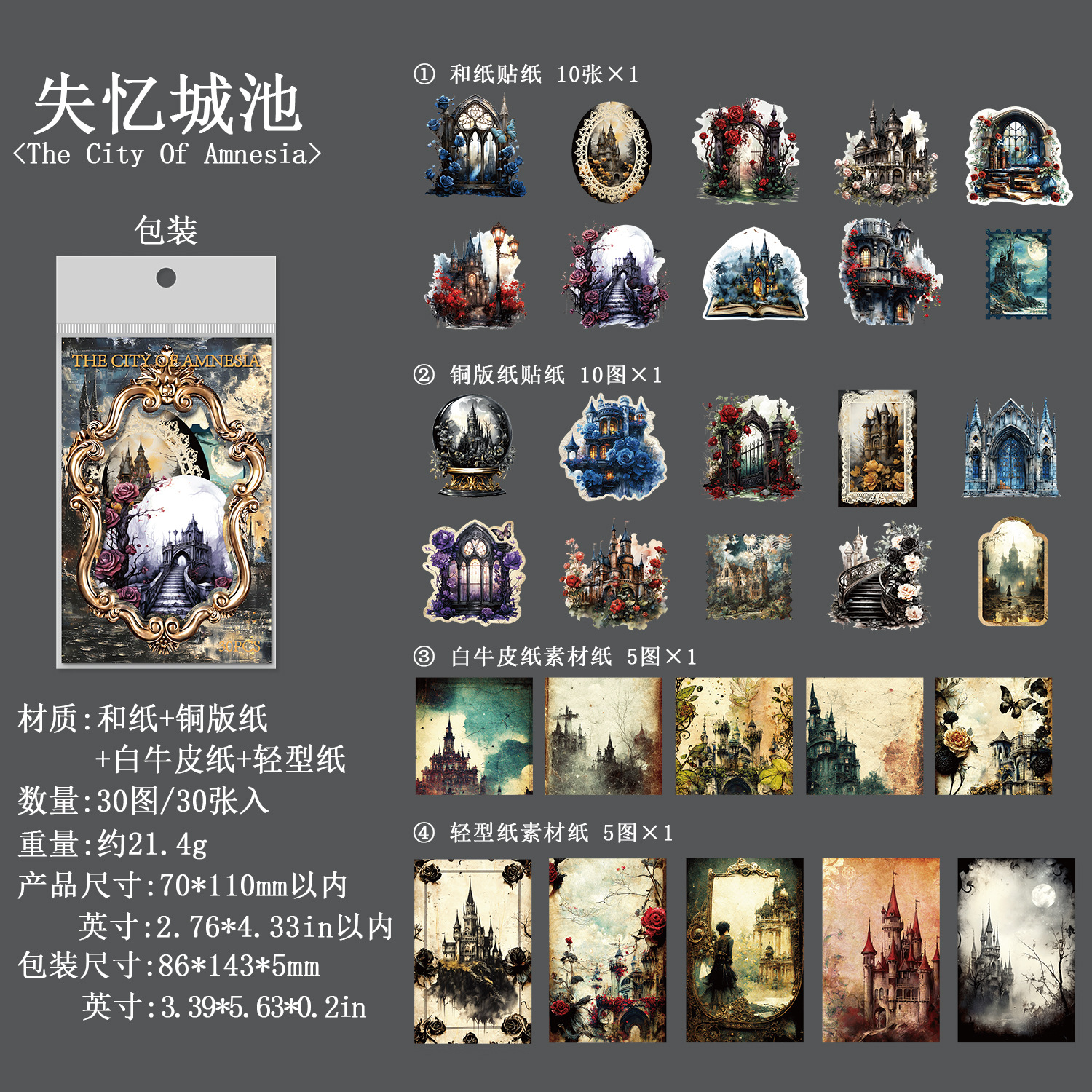 30pcs/Pack Dark Forest Gothic Castle PET Stickers