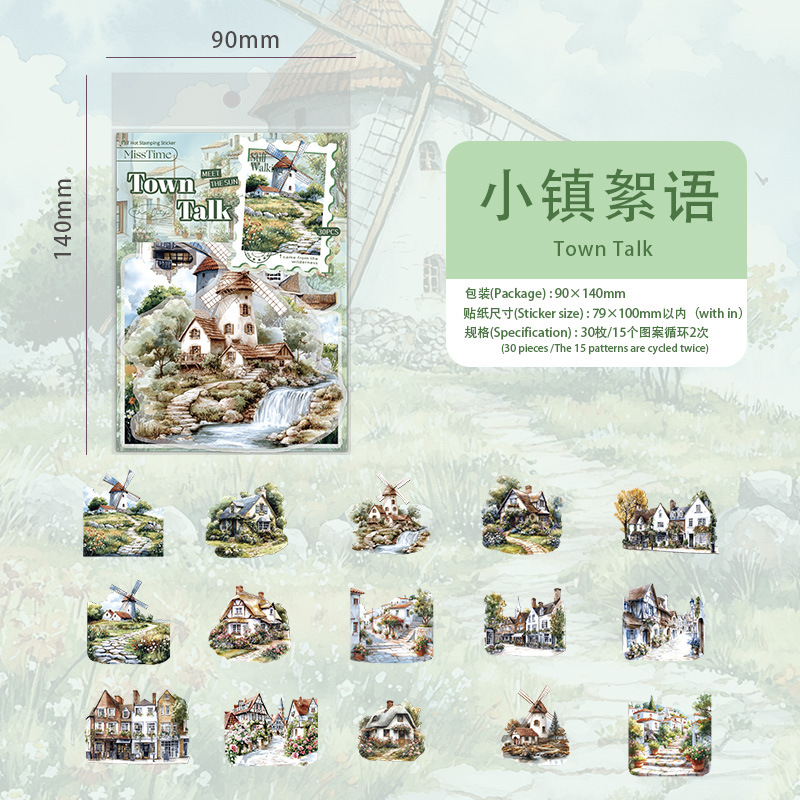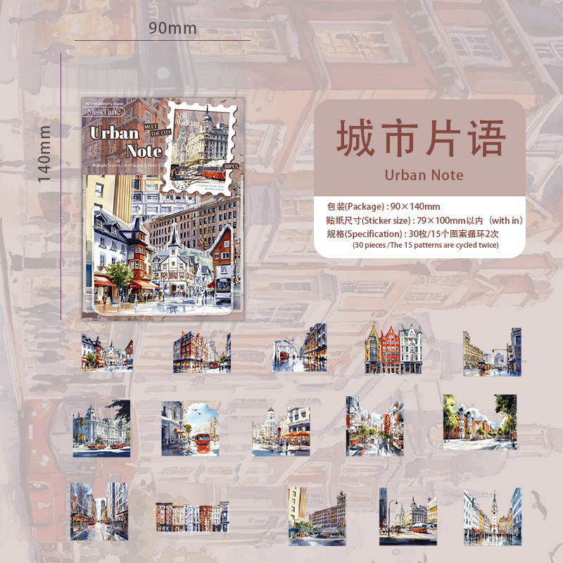 30Pcs/Pack Travel Scenery Theme PET Stickers