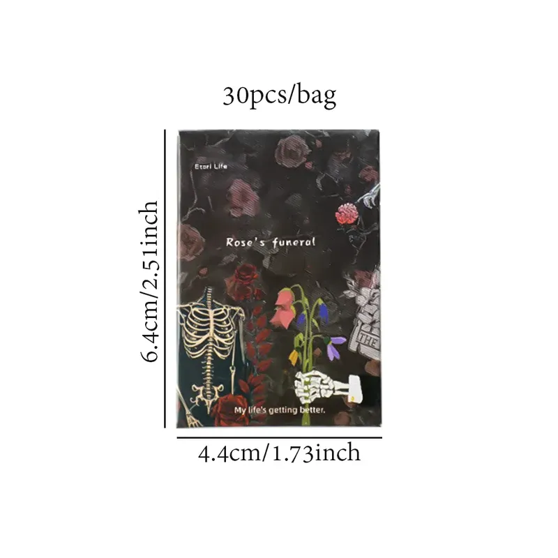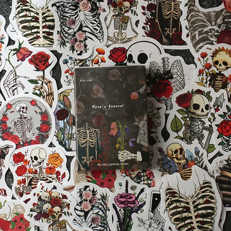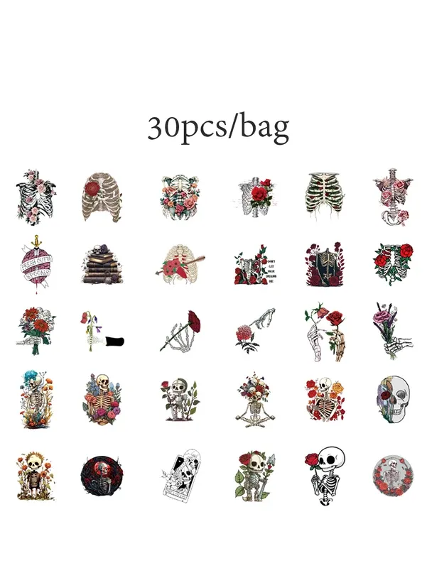 30Pcs Rose Funeral Gothic Skull Decorative Stickers