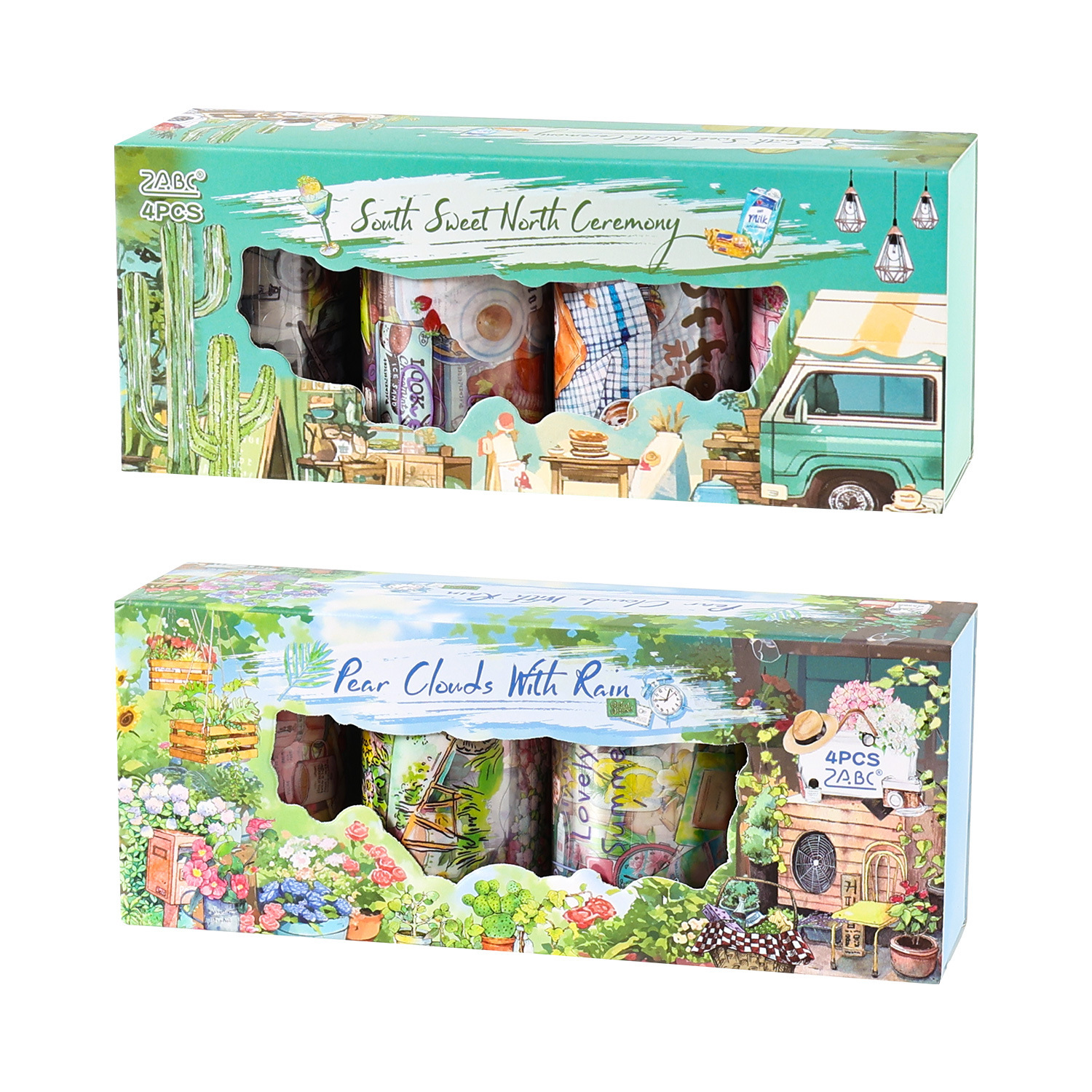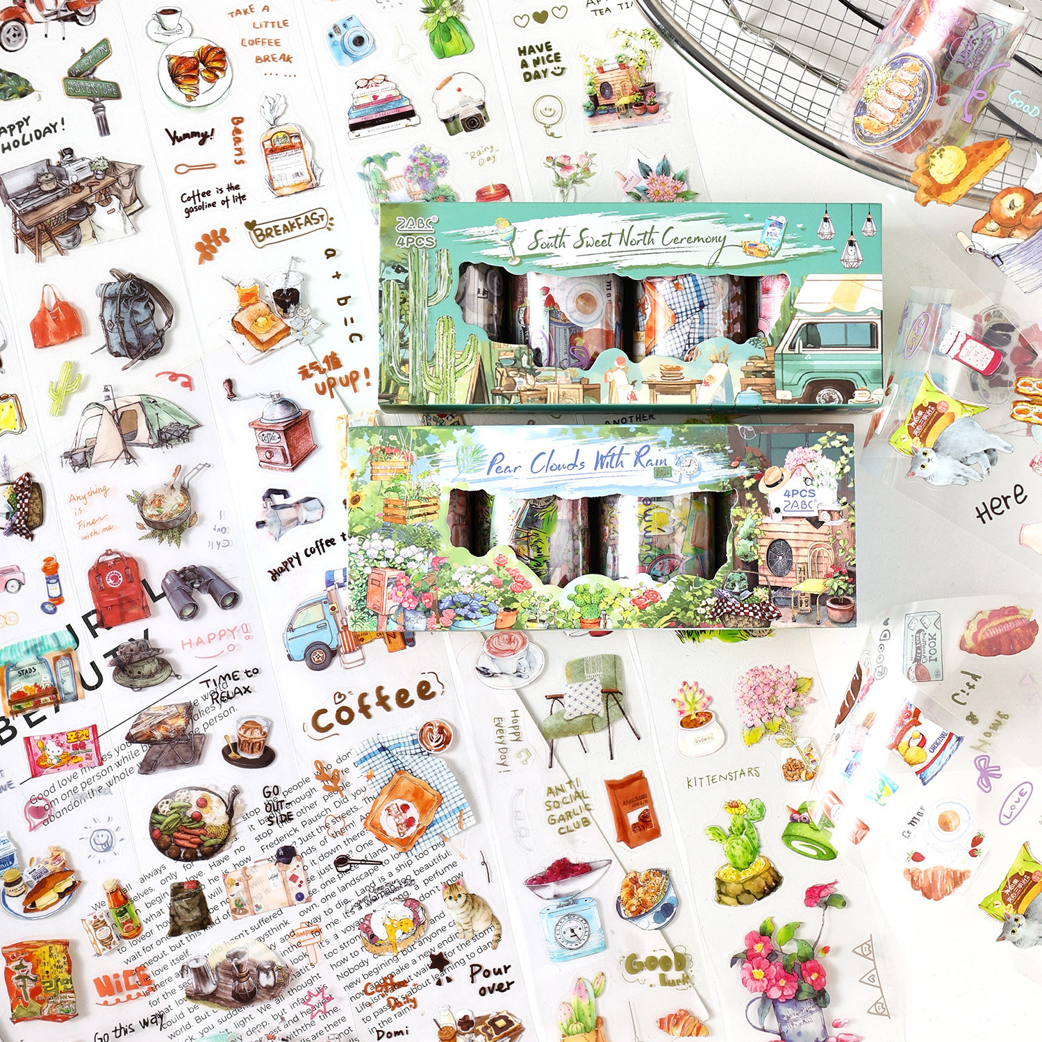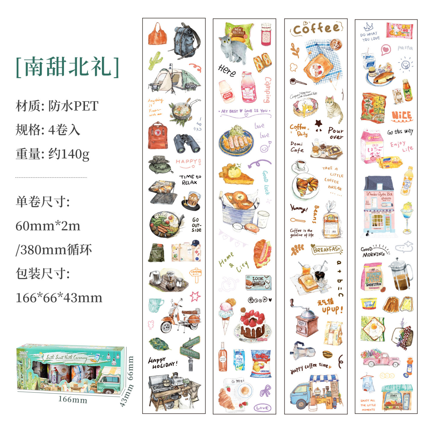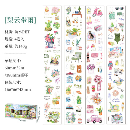 4 rolls camping life scene PET tape set