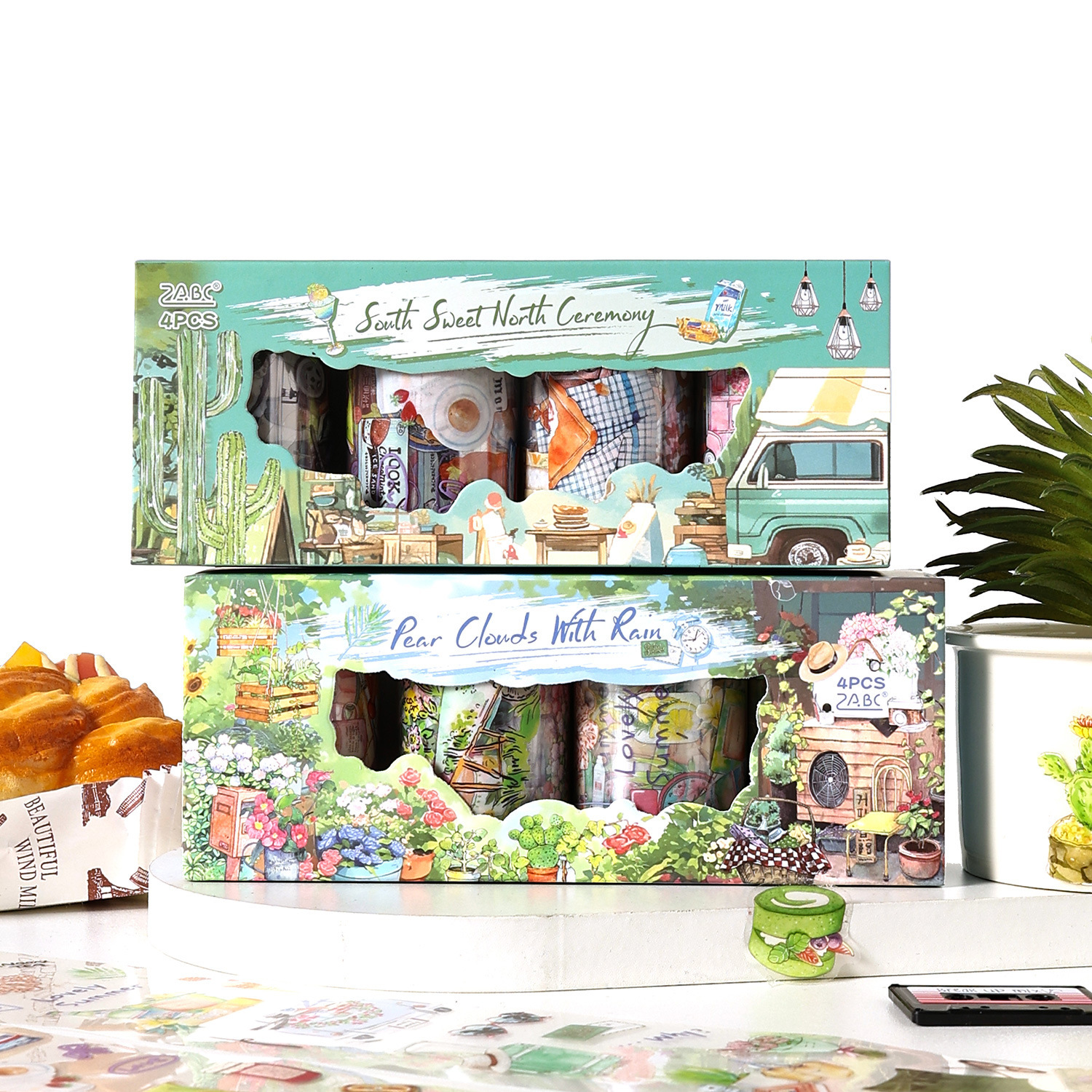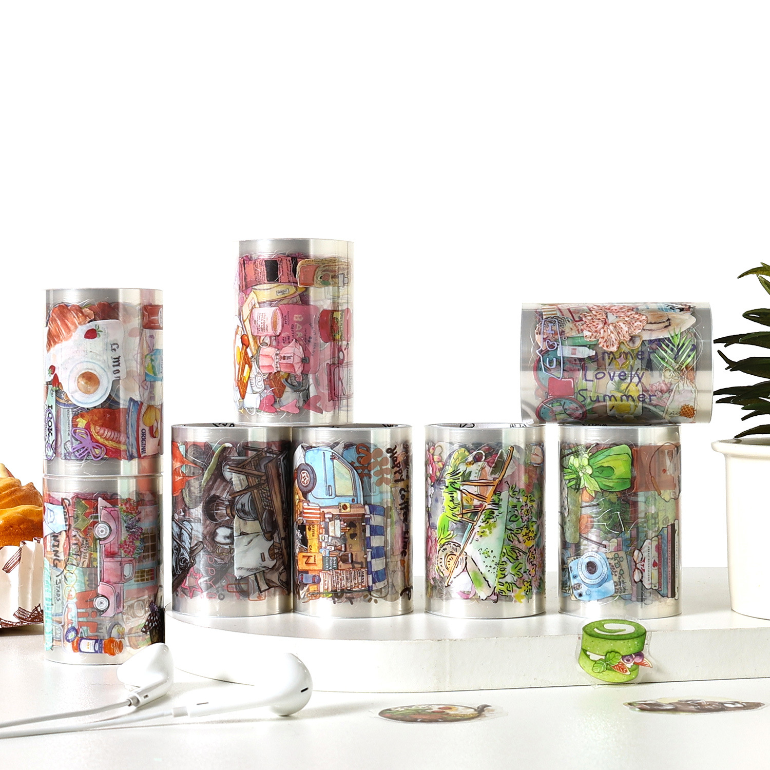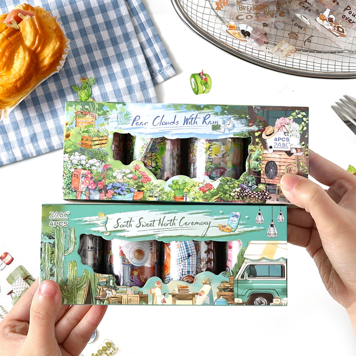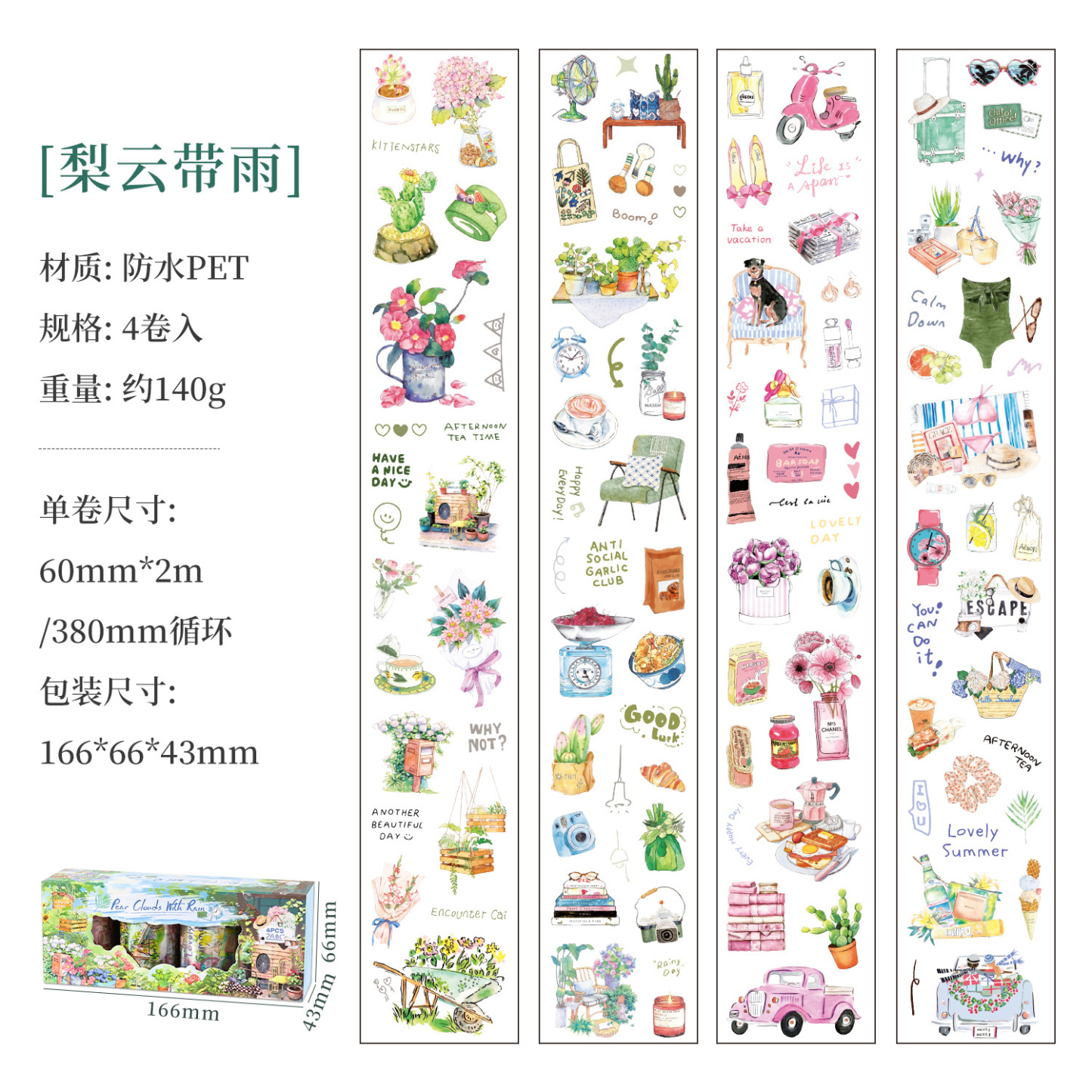 4 rolls camping life scene PET tape set