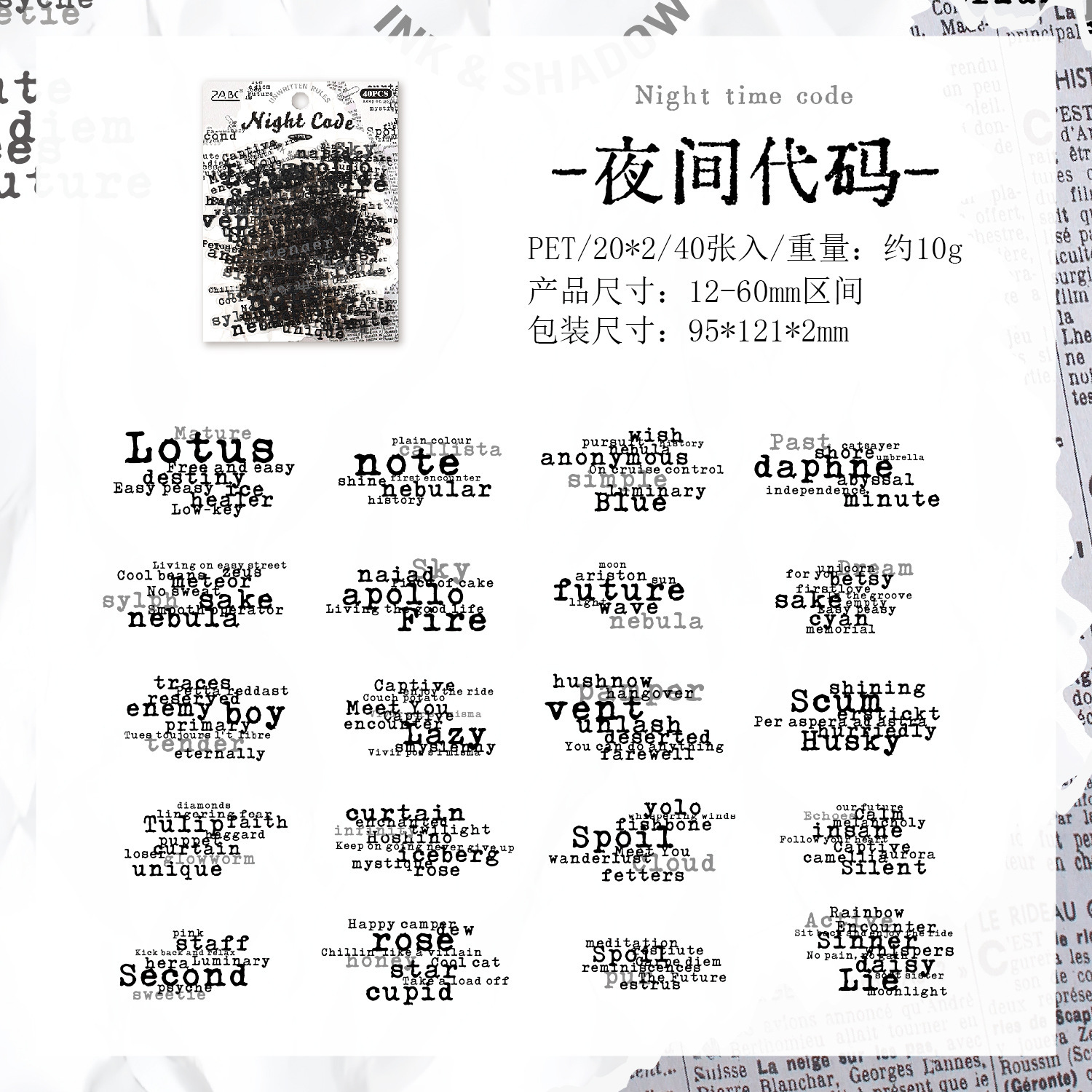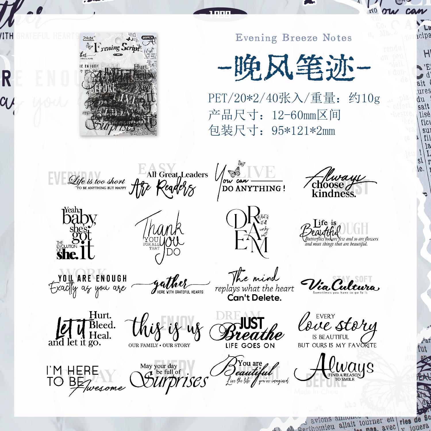 40Pcs English Text Theme PET Stickers
