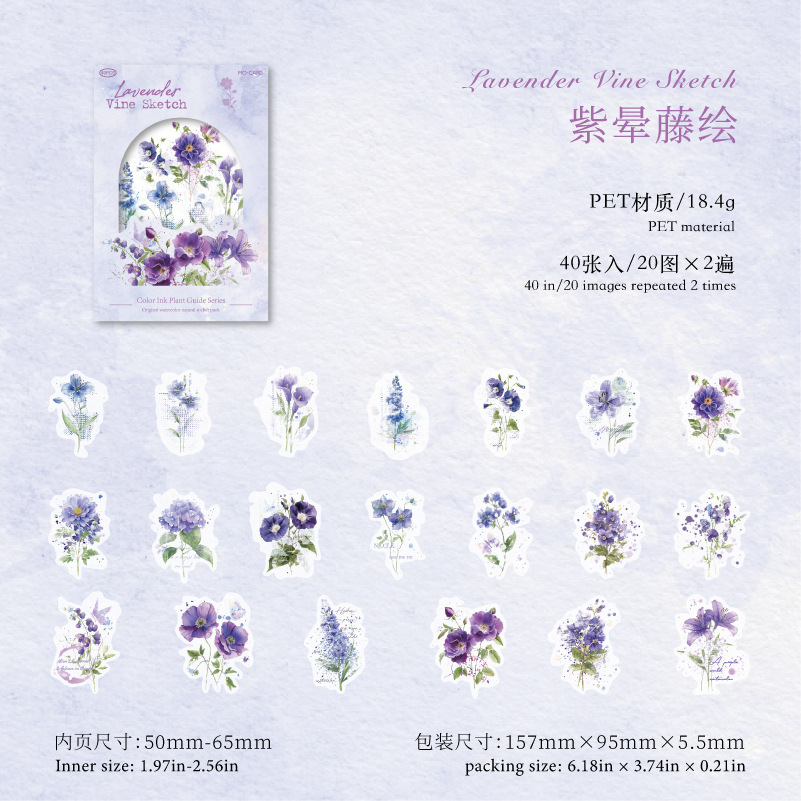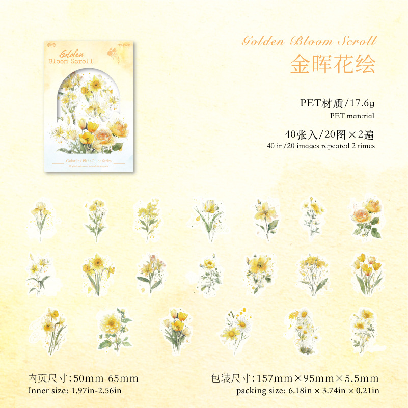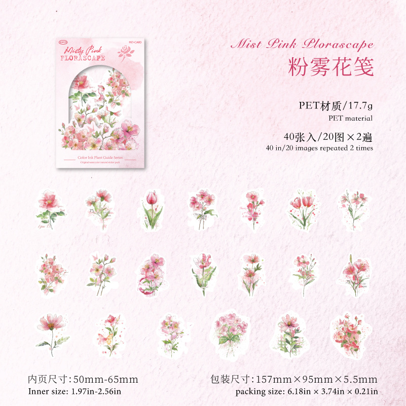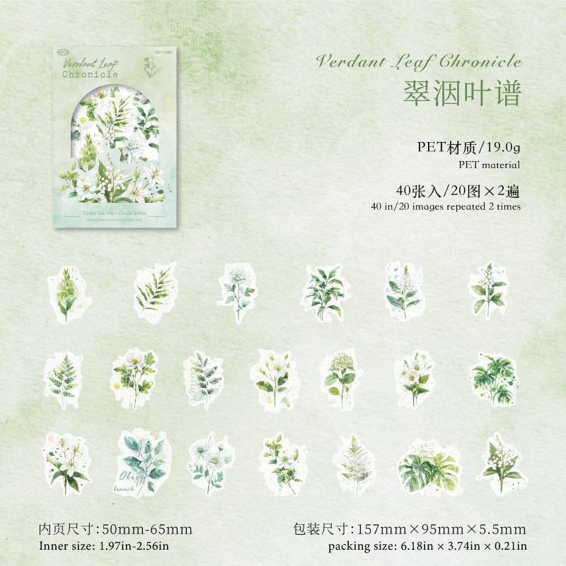 40pcs/Pack Watercolor Plant Theme PET Stickers