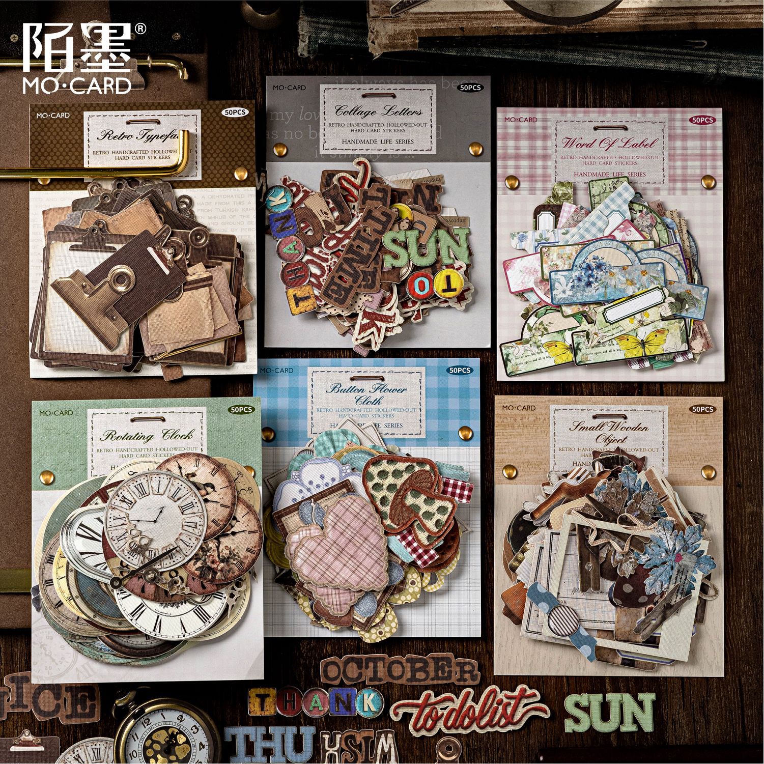 50Pcs/Pack Retro Handicraft Elements Card Paper Stickers