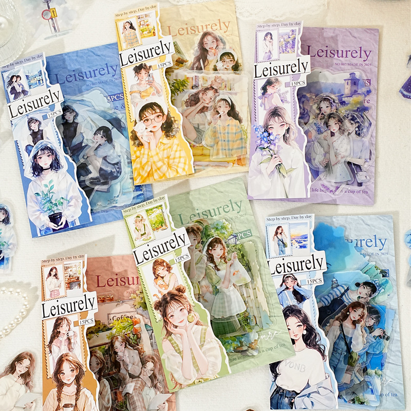 15Pcs/Pack Children's Character PET Stickers