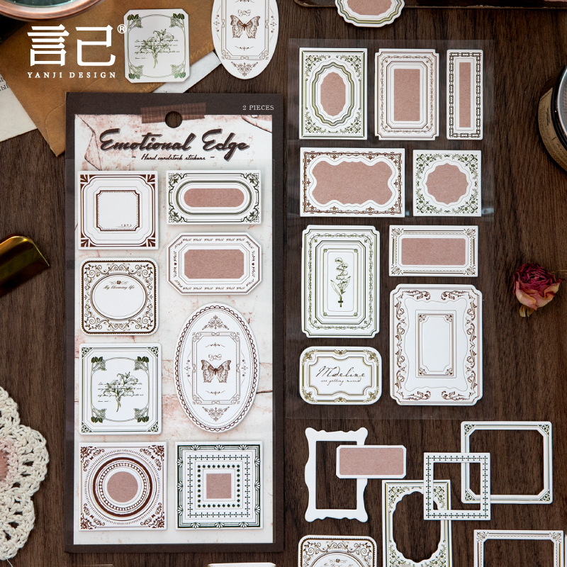 2Pcs/Pack Retro Text Frame Paper Stickers