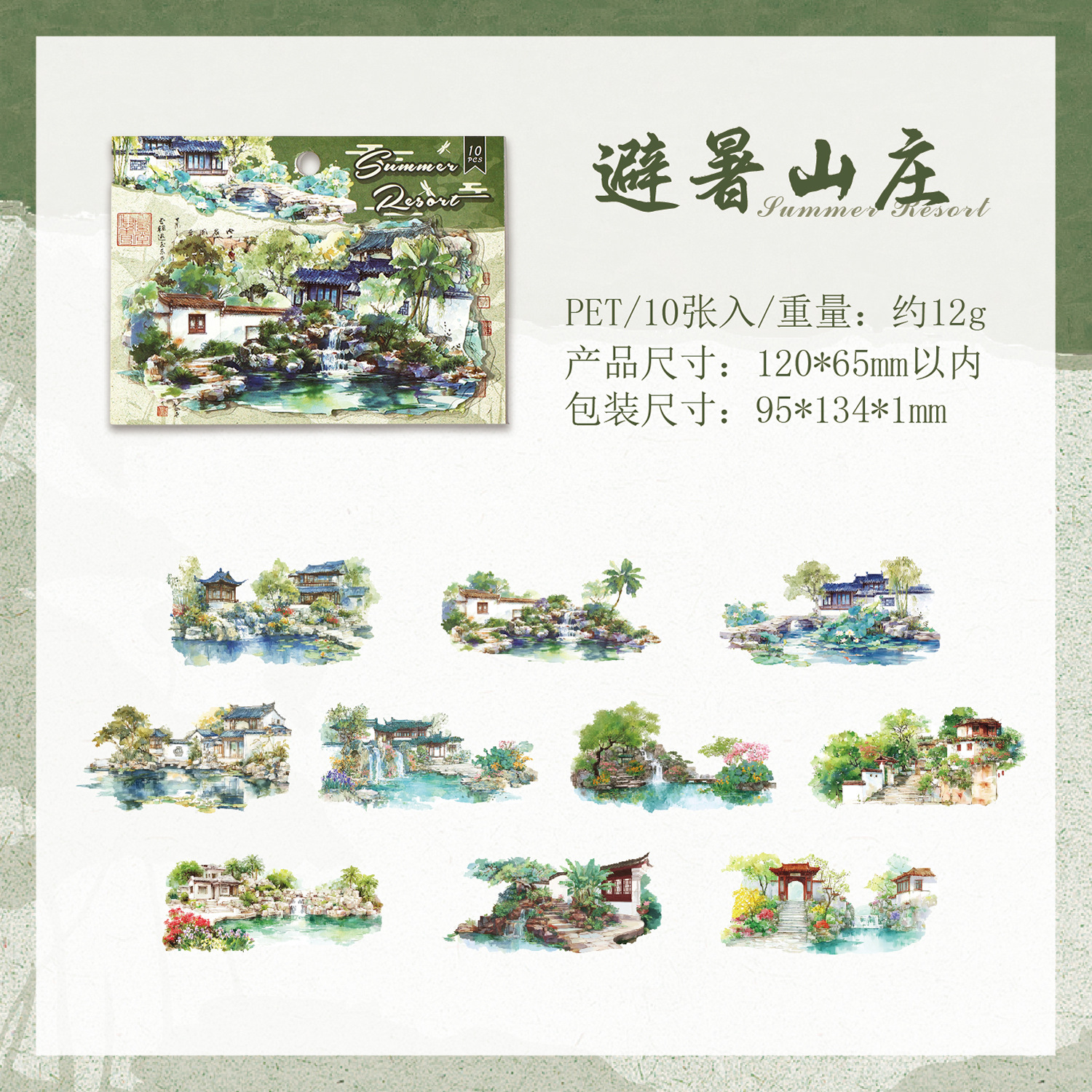 10pcs Chinese-style landscape PET stickers