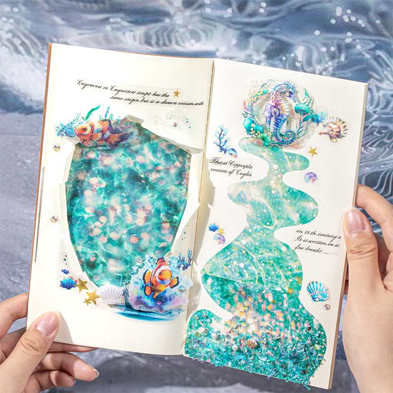 10Pcs/Pack Ocean Wave Water Ripple Theme PET Stickers