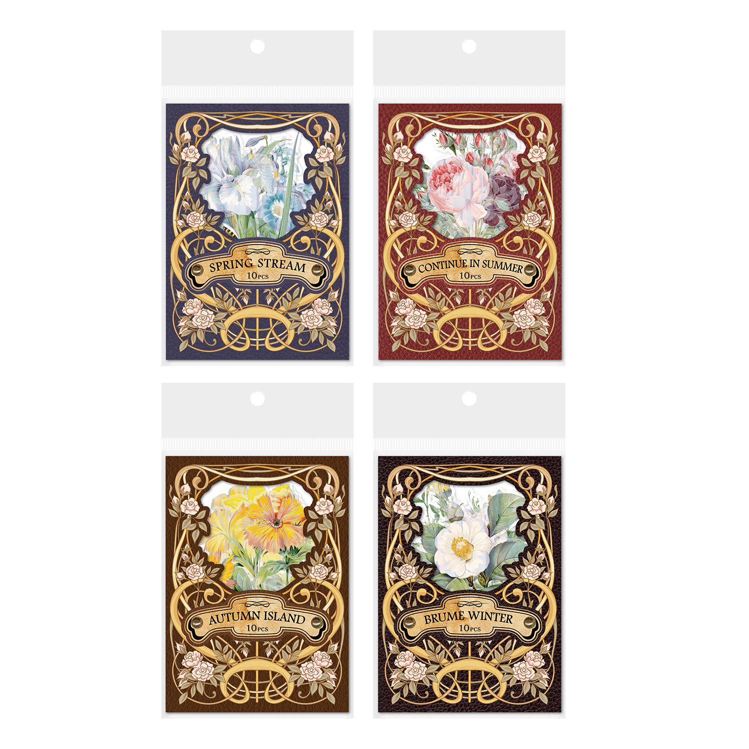 10pcs Retro Floral PET Stickers