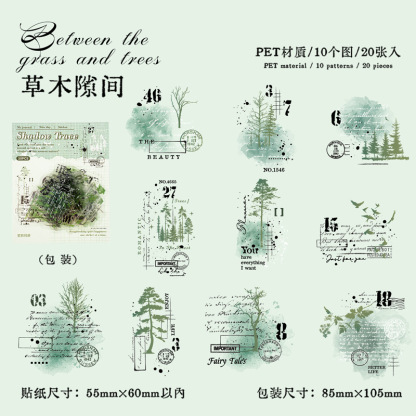 20Pcs/Pack Retro English Marking PET Stickers