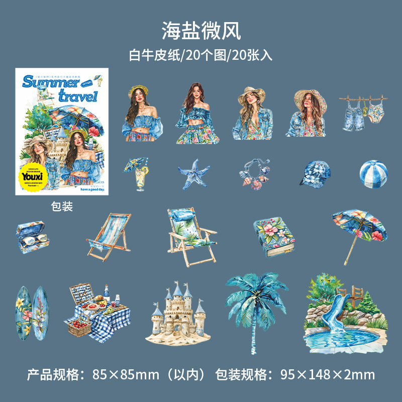20Pcs/Pack Summer Travel Theme Card Stickers