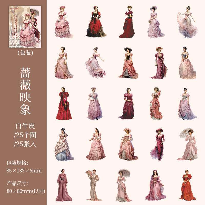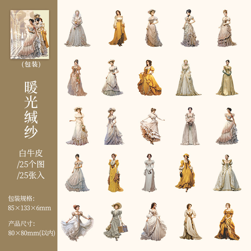 25pcs/Pack Retro European Girl Theme Cardstock Stickers