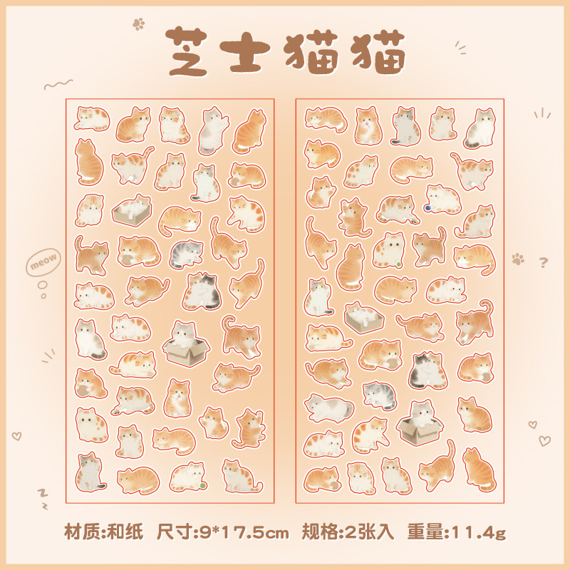 2Pcs/Pack Cat Pet Themed PET Stickers