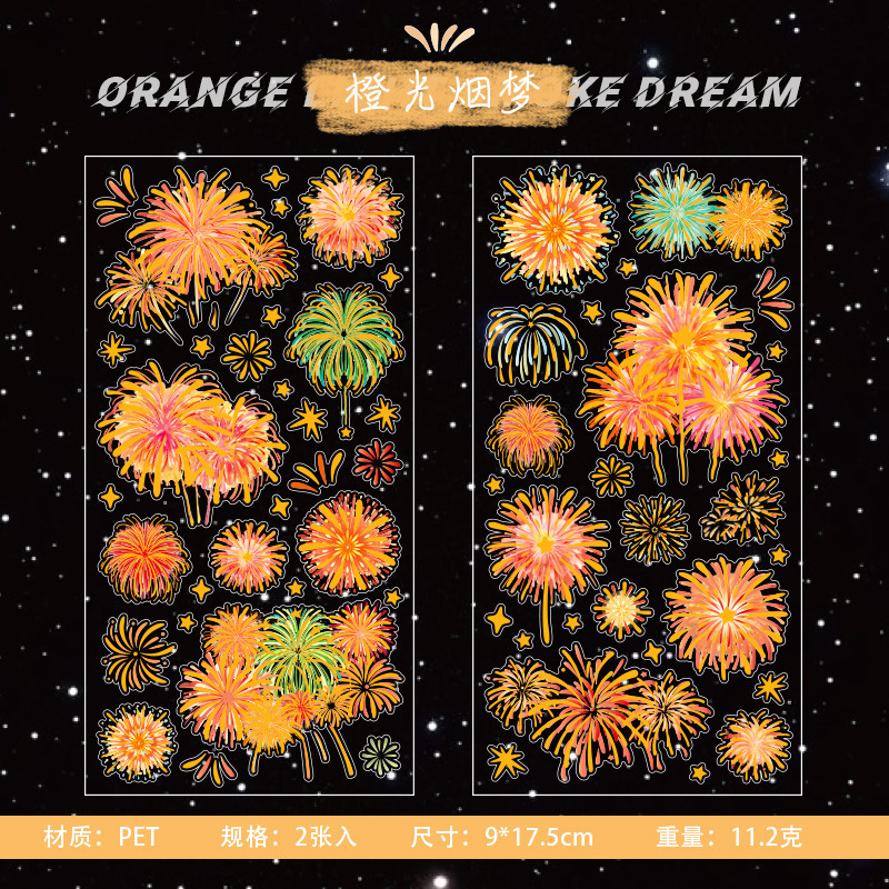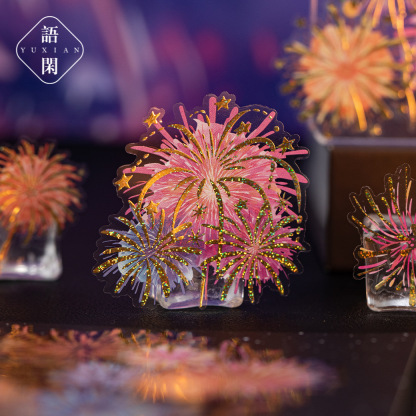 2Pcs/Pack Fireworks New Year Theme PET Stickers