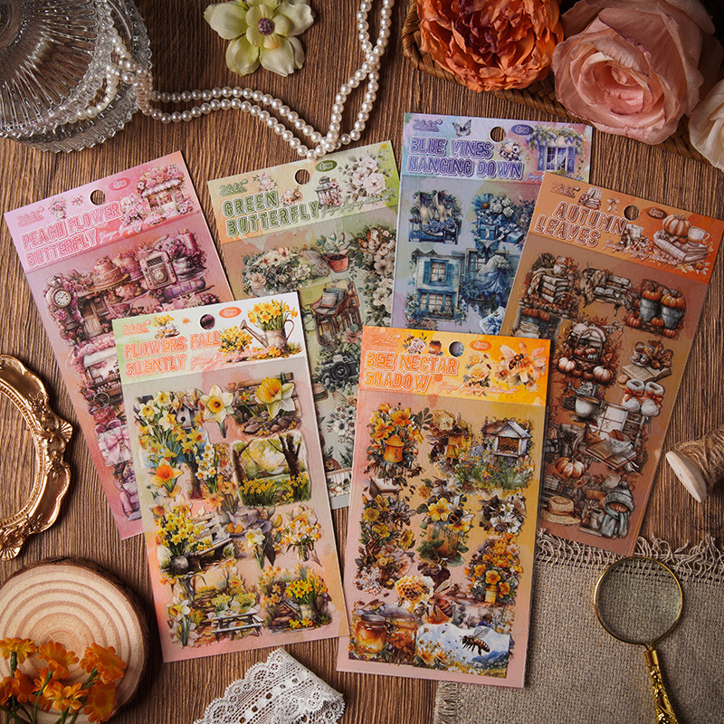 4Pcs/Pack Flowers Bee Furniture Elements PET Stickers