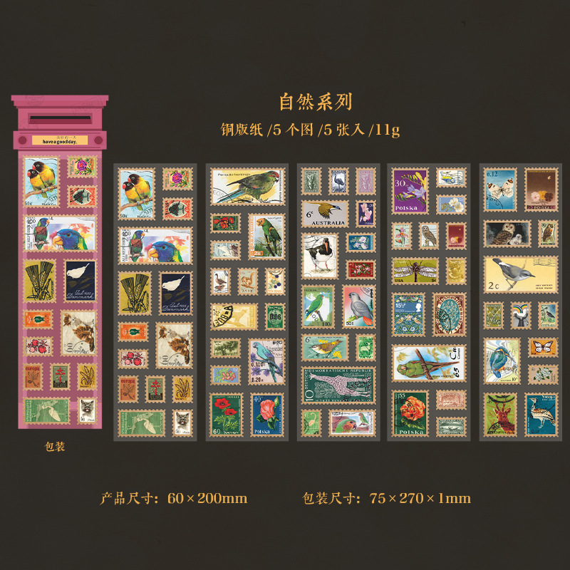 5 Sheet/Pack Vintage Stamp Collection Theme PET Stickers
