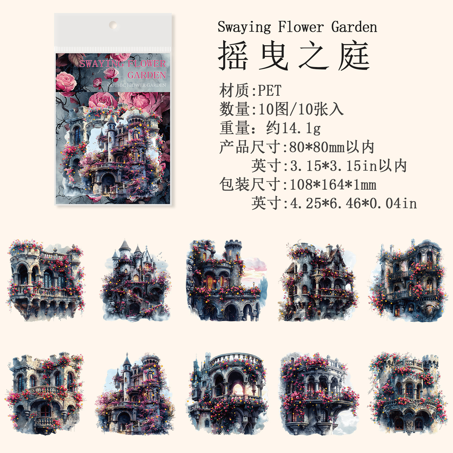 10pcs/pack Floral Gothic Garden PET Stickers