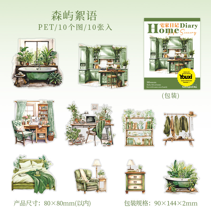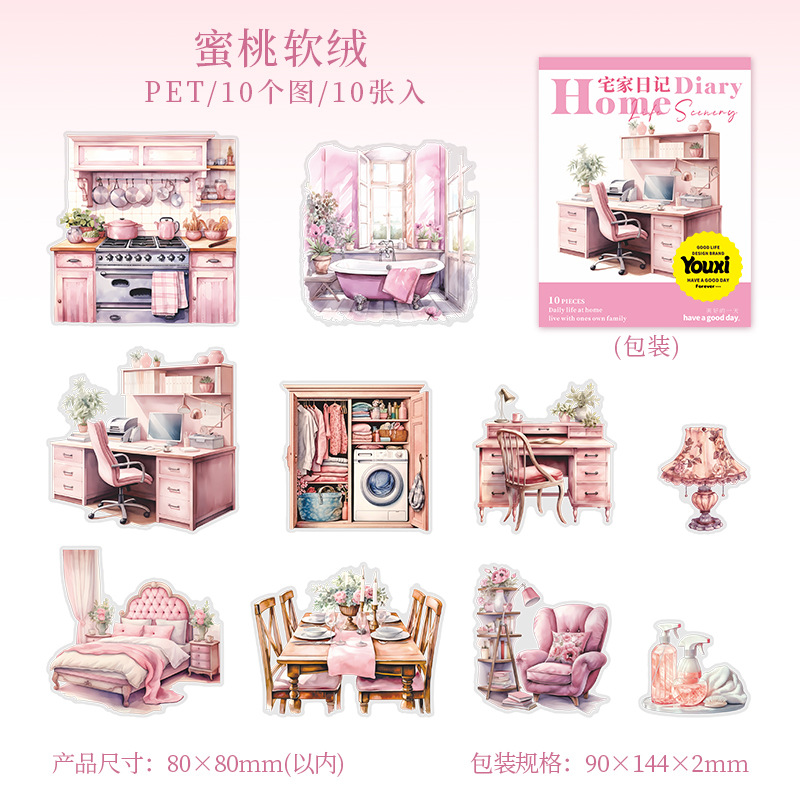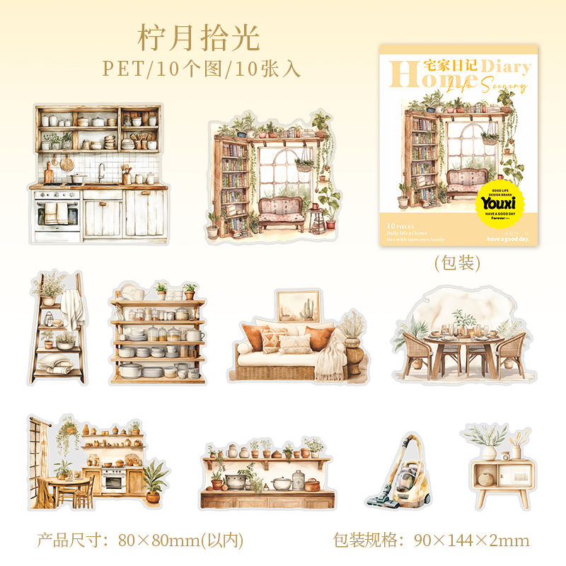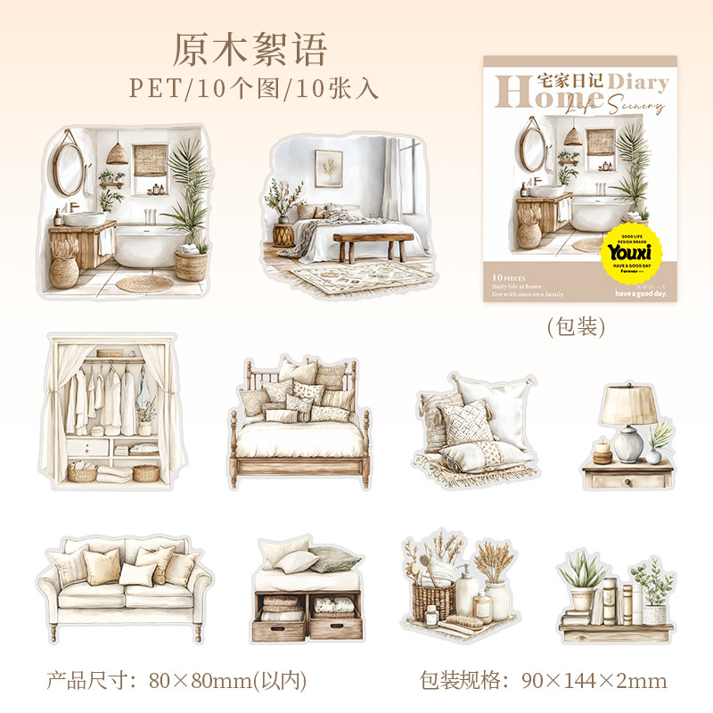 10Pcs/Pack Furniture Objects Theme PET Stickers