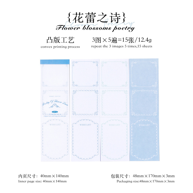 15Pcs Embossed Flower Frame Theme Material Paper