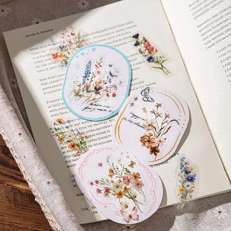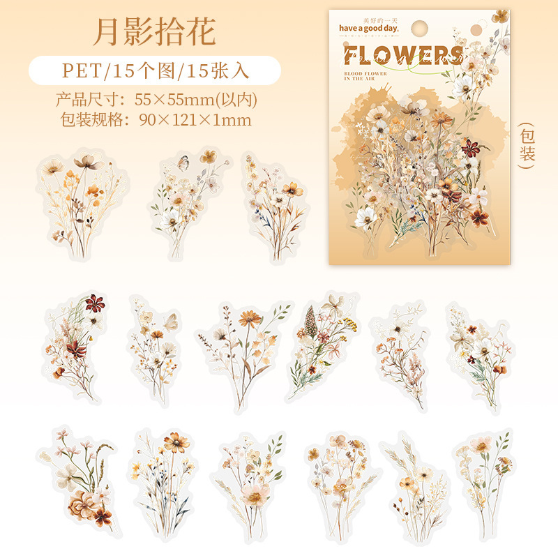 15Pcs/Pack Holographic Flower Theme PET Stickers