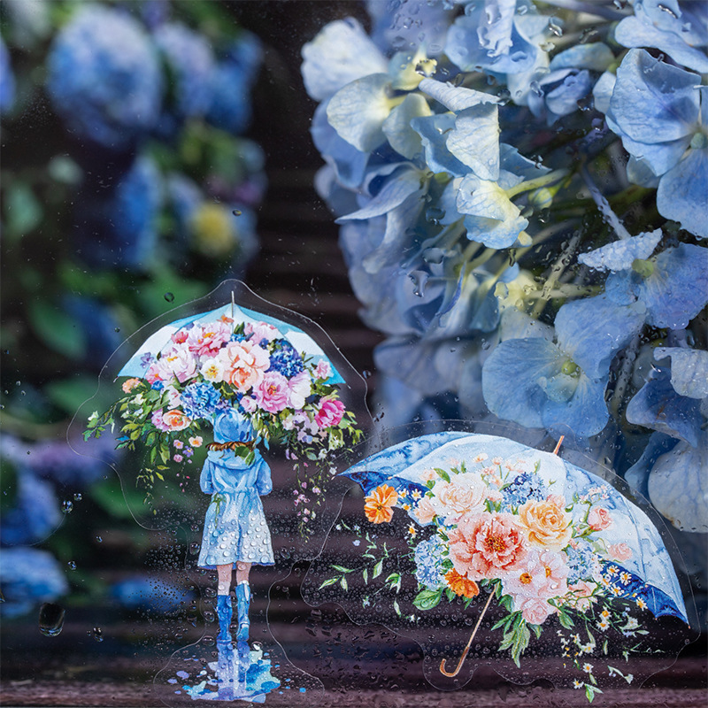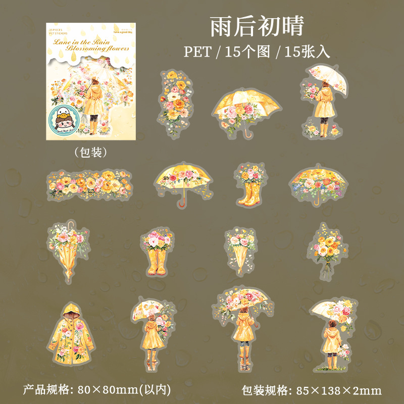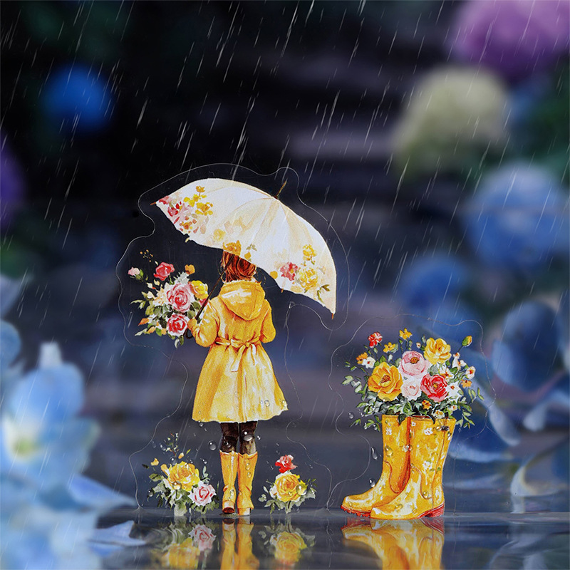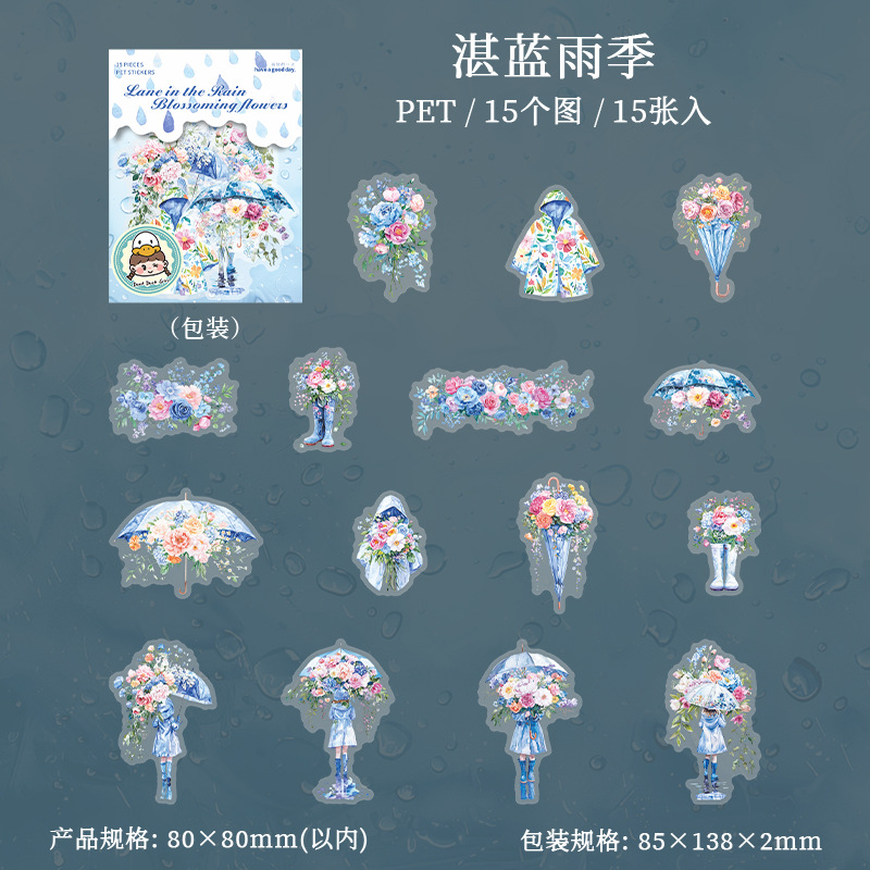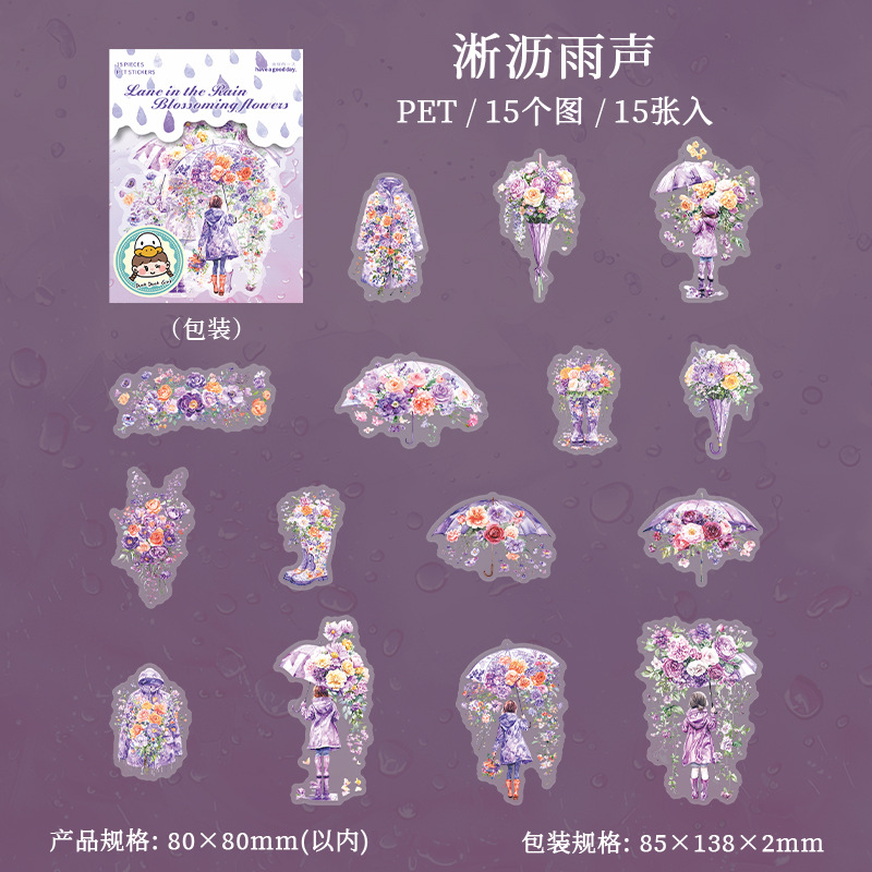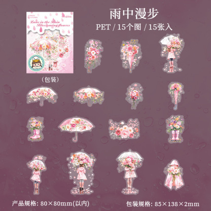 15Pcs/Pack Umbrella Rainy Day Theme PET Stickers