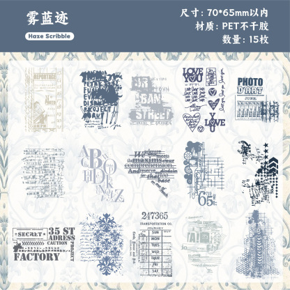 15Pcs/Pcak Retro Text Theme PET Stickers