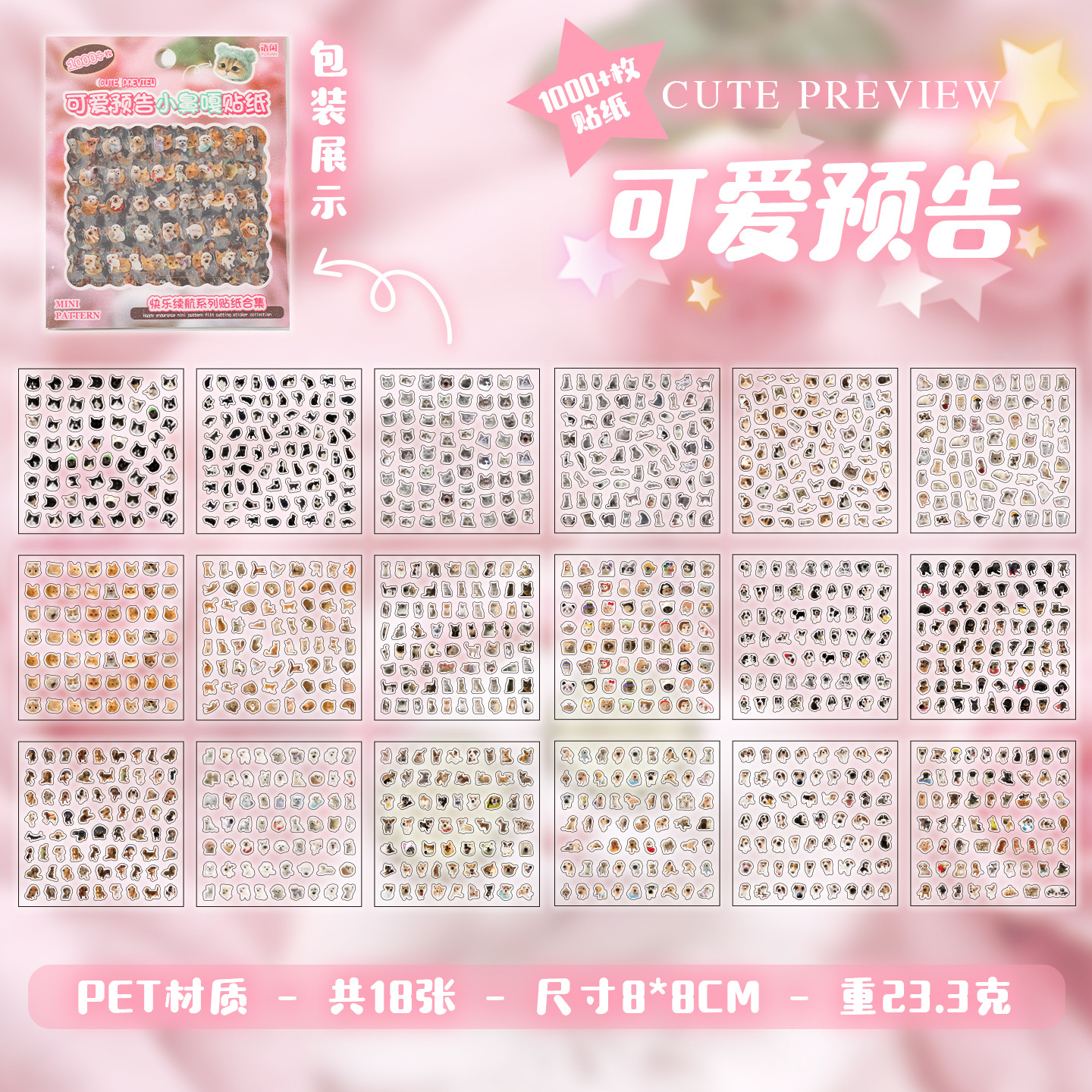 18 Sheets/Pack Mini Cute Dessert Pet Themed PET Stickers