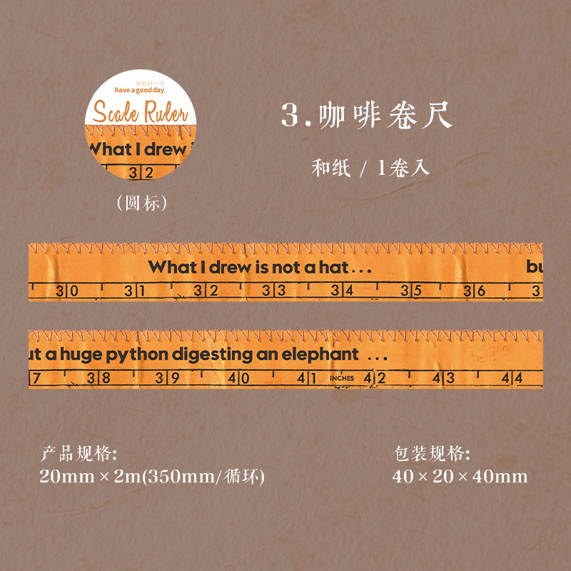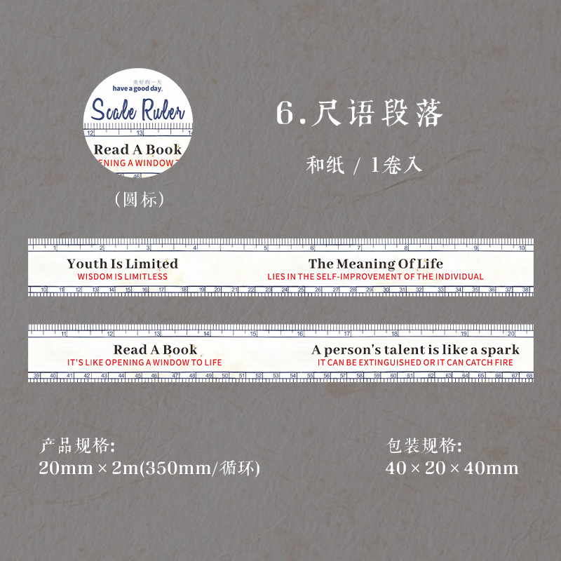 1roll Vintage Ruler Washi Tape 0.79*78.74 inch