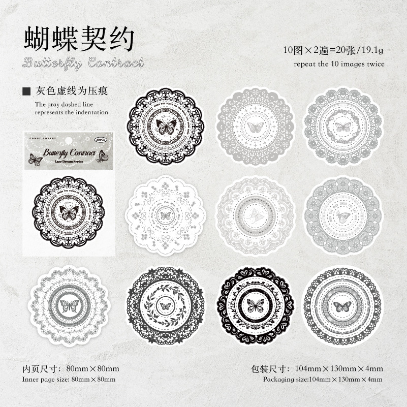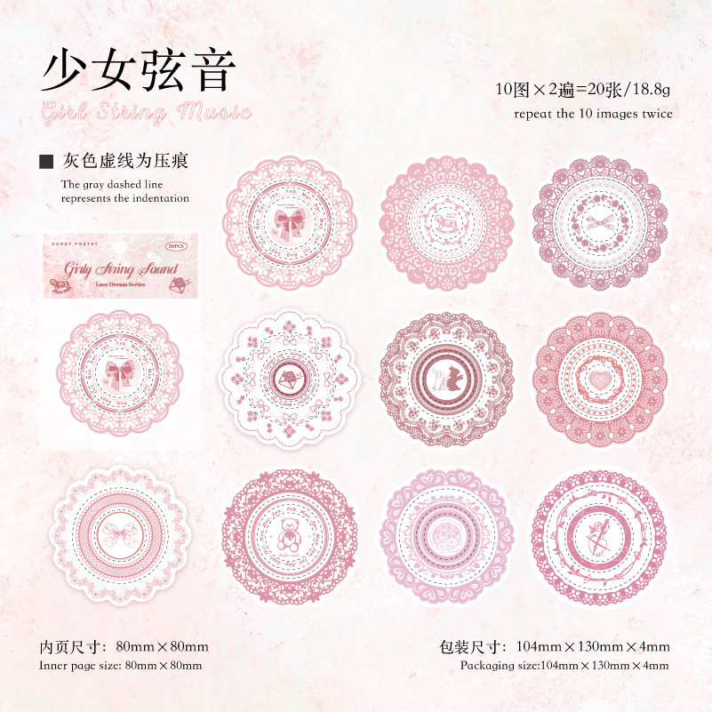 20 pcs/Pack Die Cut Vintage Lace Border Theme Decoration Journaling Material Sticker