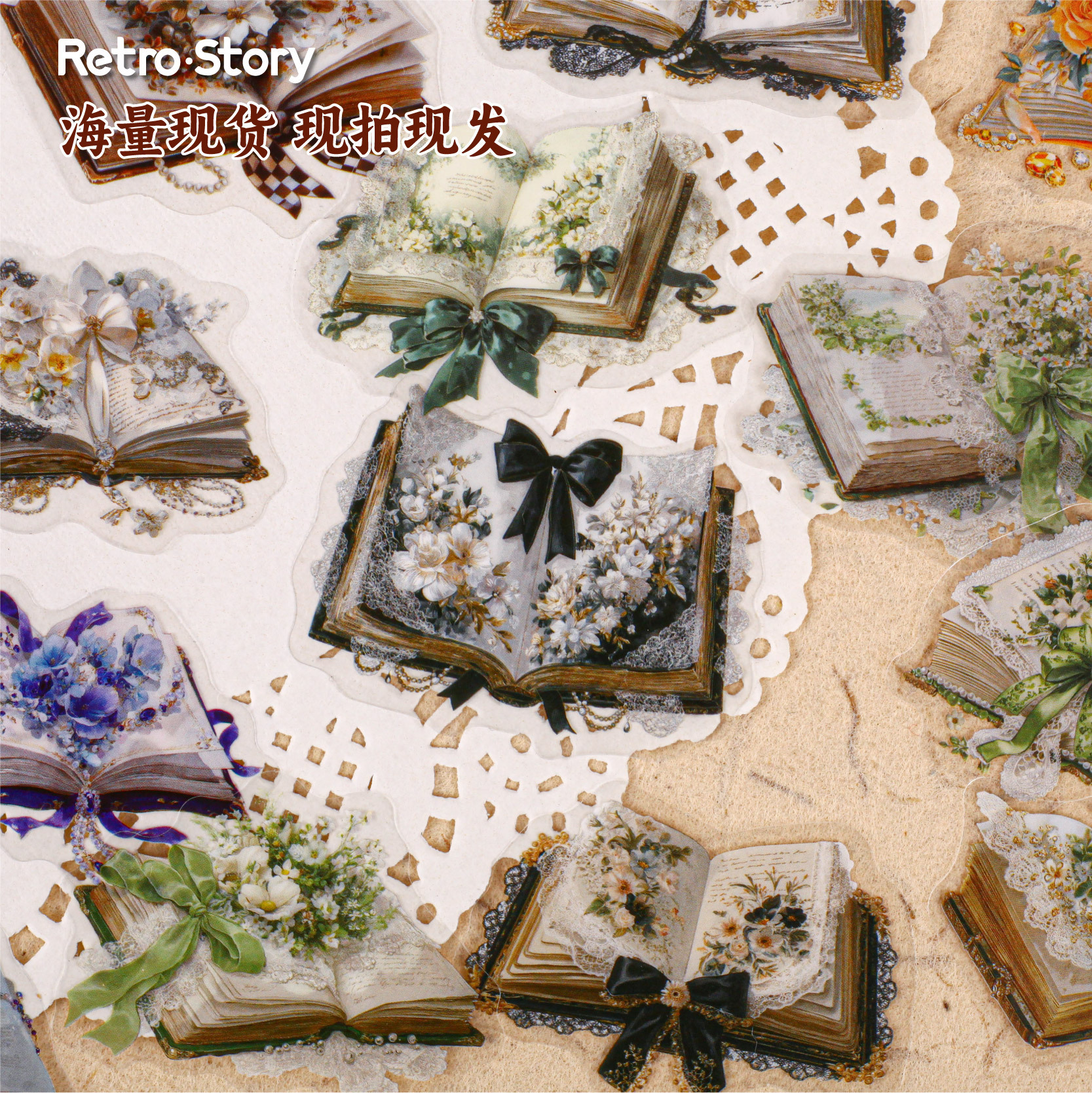 20Pcs Floral Book Theme PET Stickers
