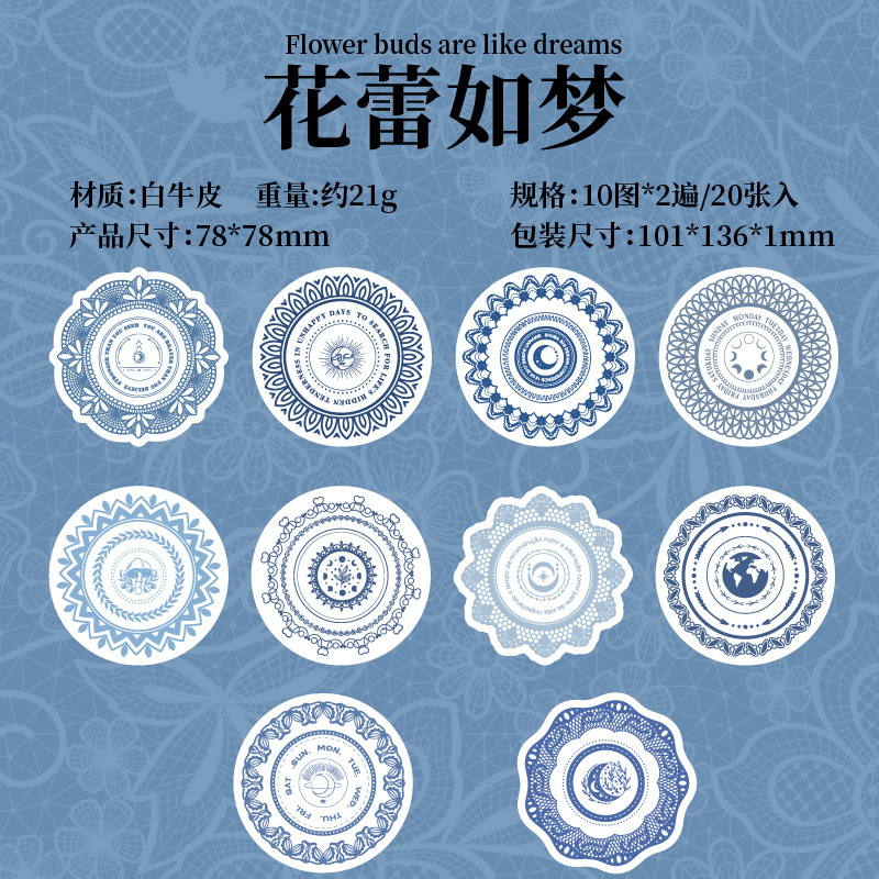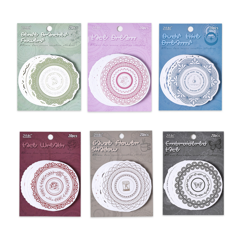 20Pcs/Pack Flower Lace Border Theme Kraft Paper Sticker