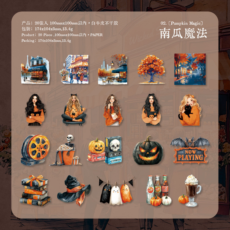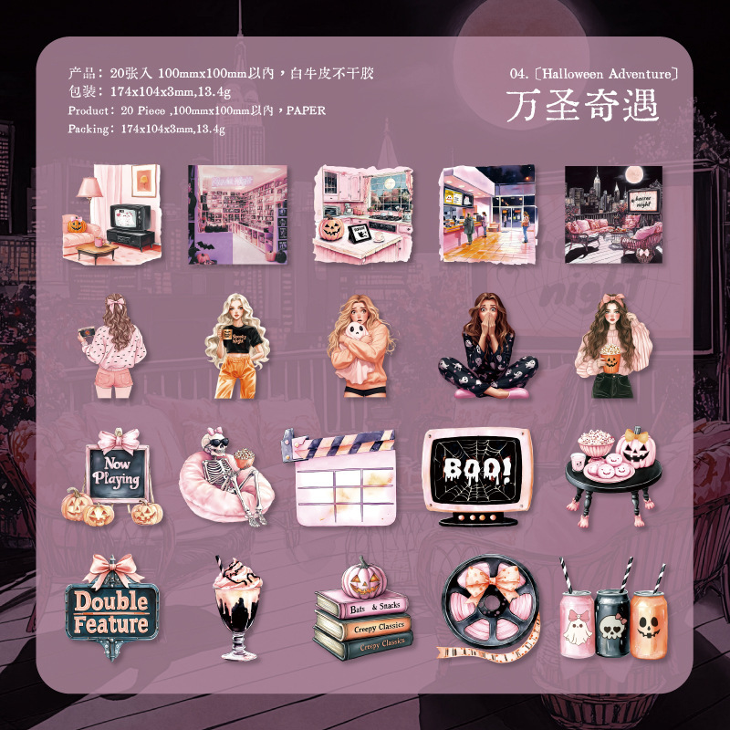 20Pcs/Pack Halloween Themed PET Stickers