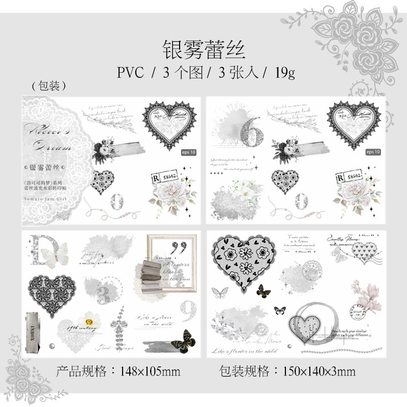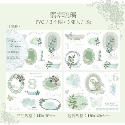 20Pcs/Pack Lace Frame Watercolor Theme PVC Transfer Sticker