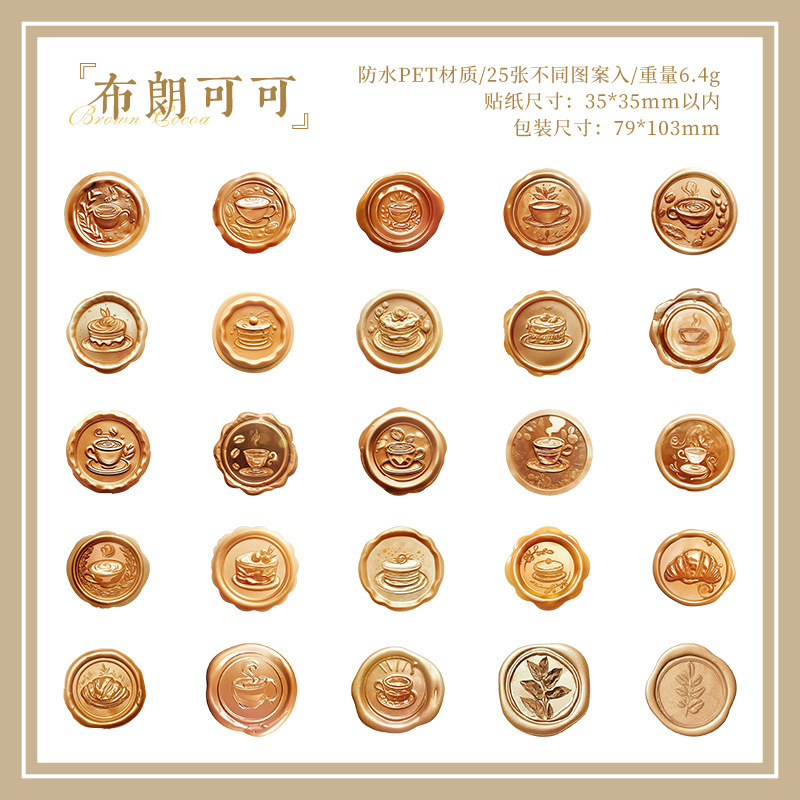 25Pcs/Pack Vintage Wax Seal PET Sticker