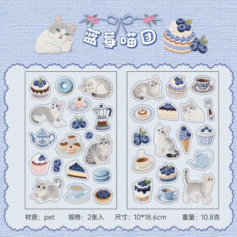 2pcs/pack Cat-themed PET stickers