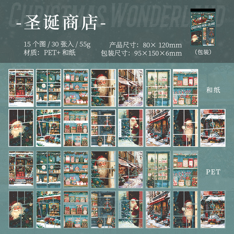 30Pcs/Pack Christmas Theme PET Washi Sticker Book