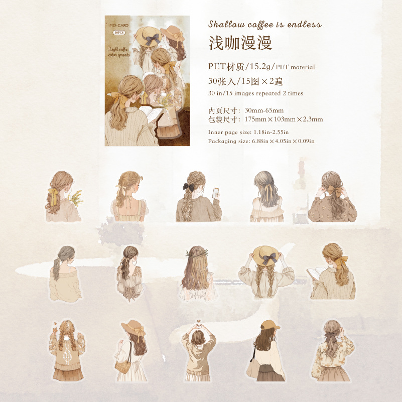 30pcs/pack Girl Back View Theme PET Stickers