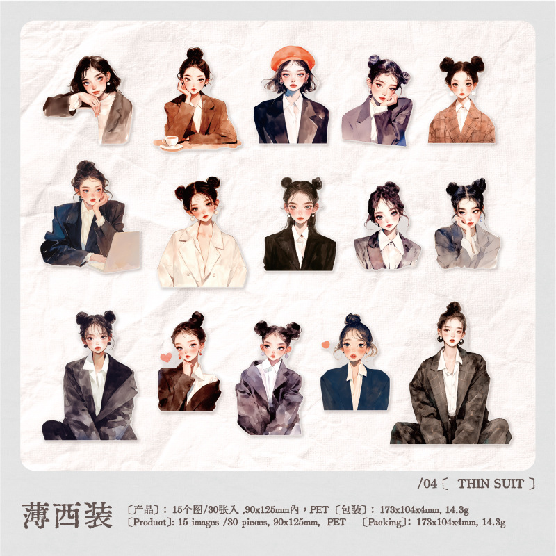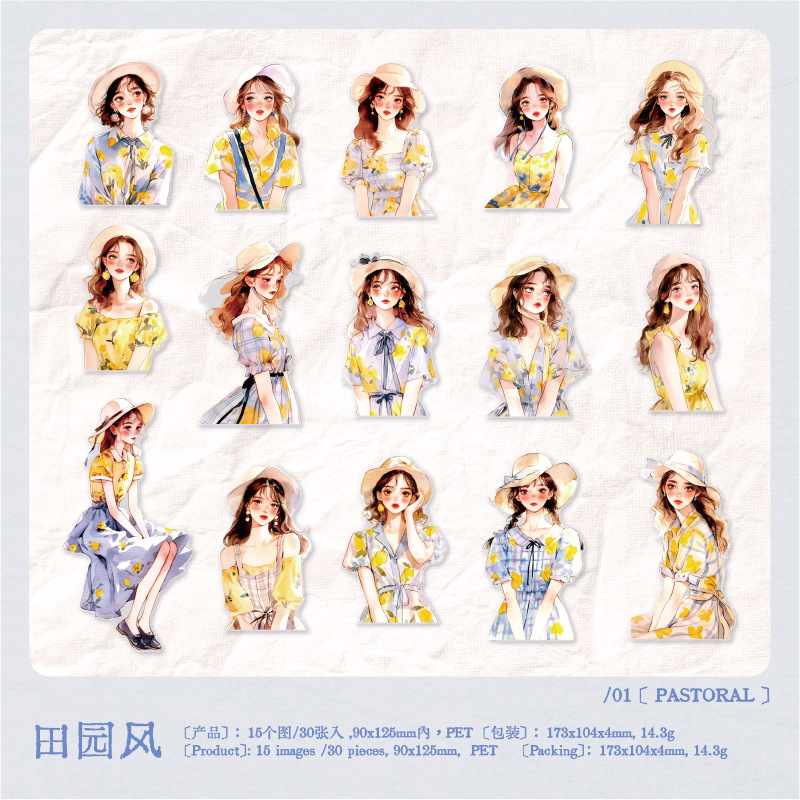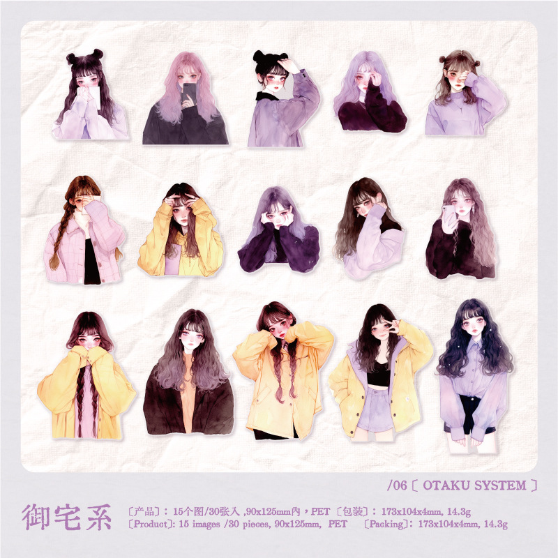 30Pcs/Pack Girls Theme PET Stickers