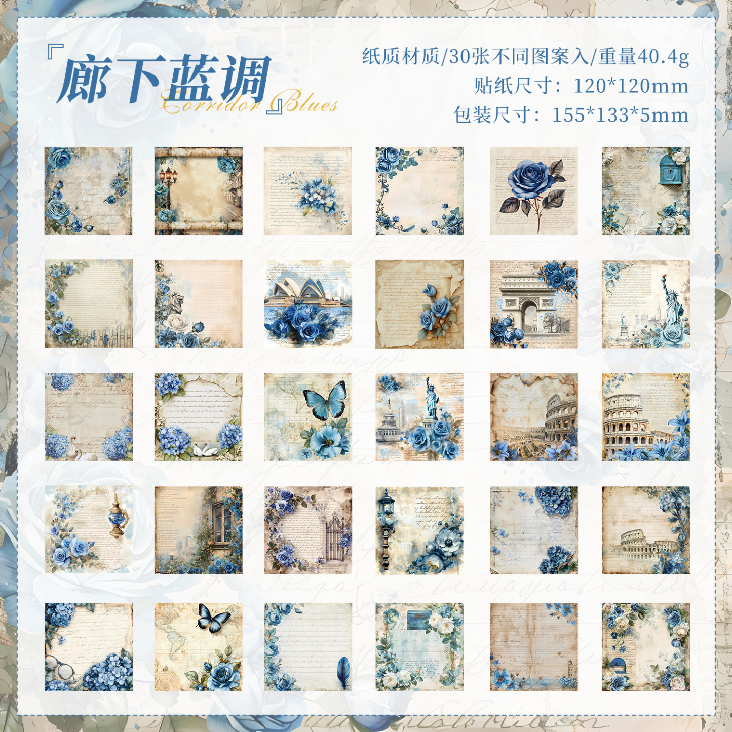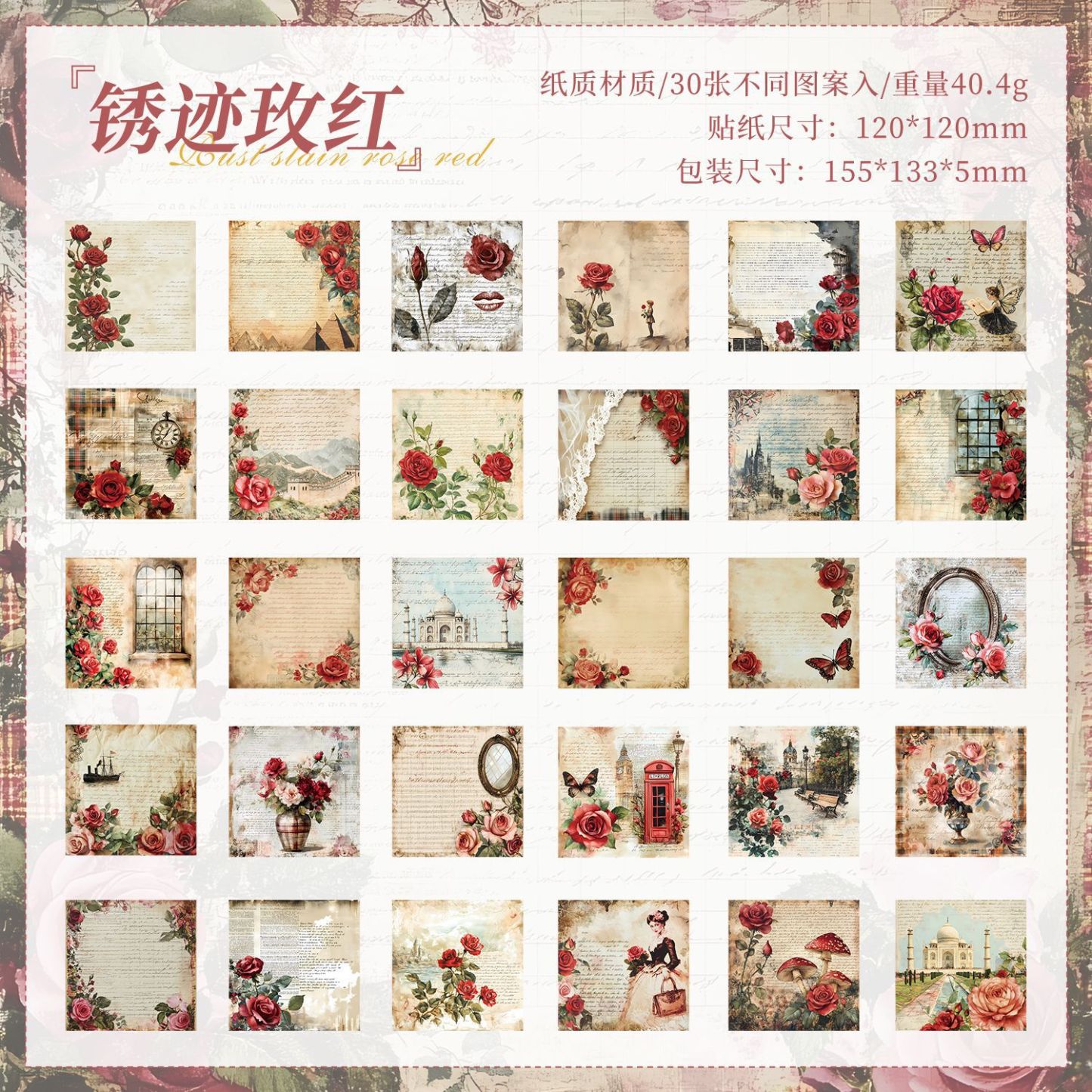30Pcs/Pack Vintage Background Material Paper