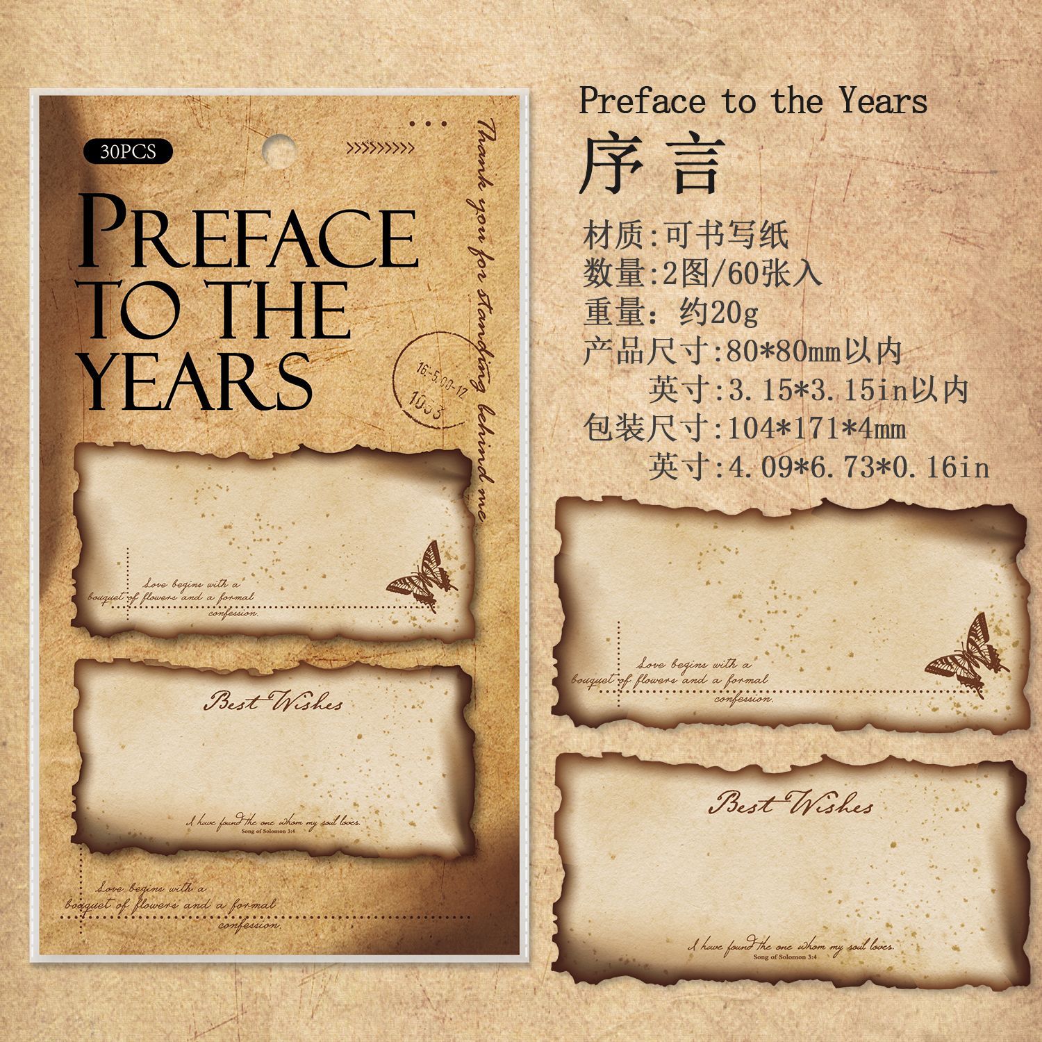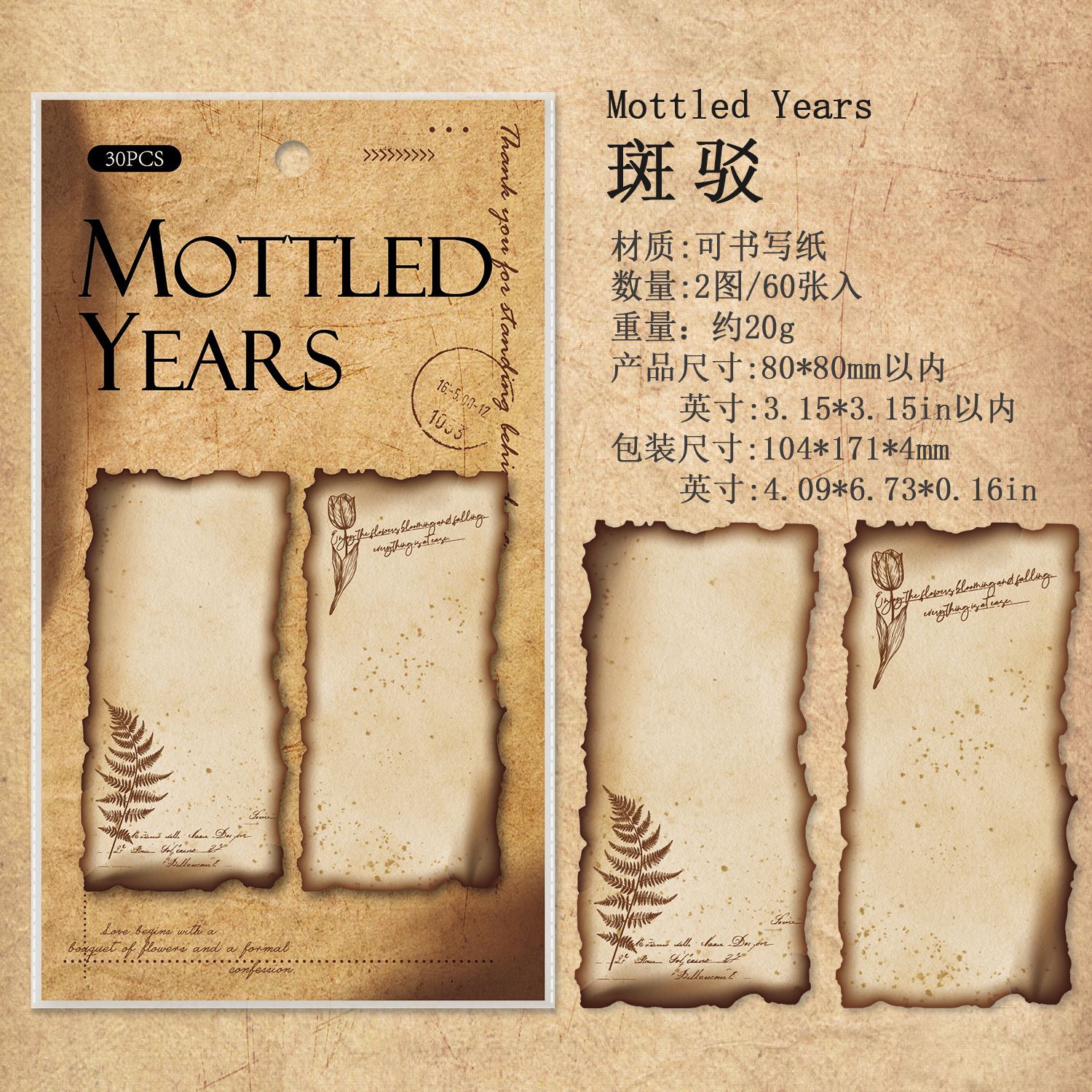 30Pcs Vintage Edge Burn Marks Material Paper