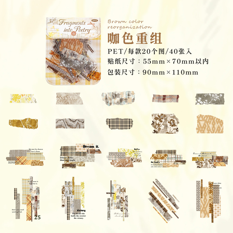 40Pcs/Pcak Scrapbook Cloth Texture Themed PET Stickers