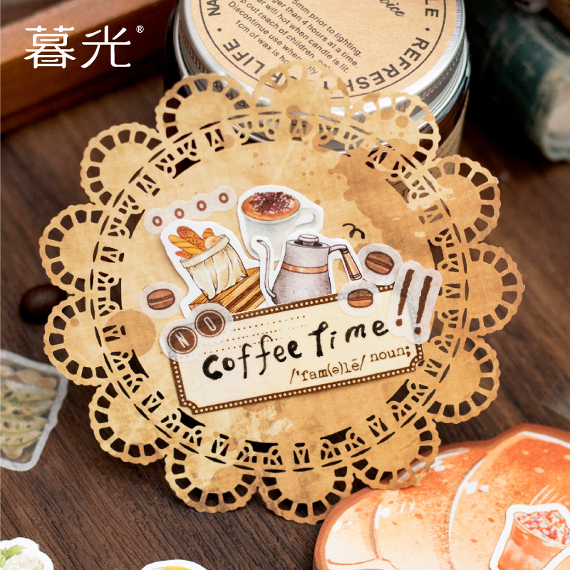 48Pcs/Pack Coffee Dessert Elements PET Stickers Multi-material Coil Sticker Book